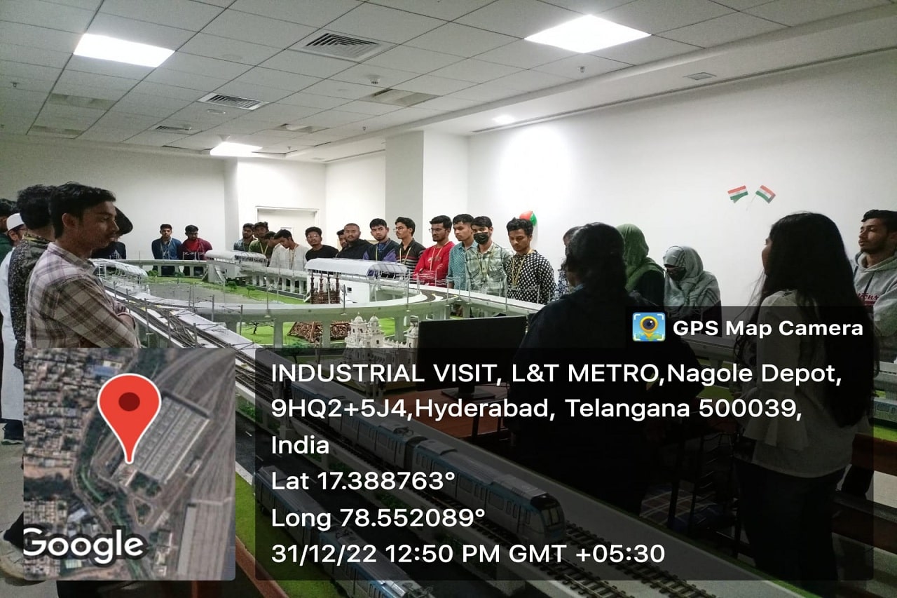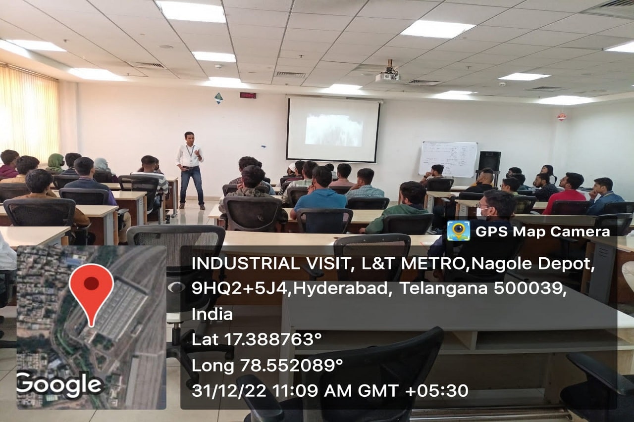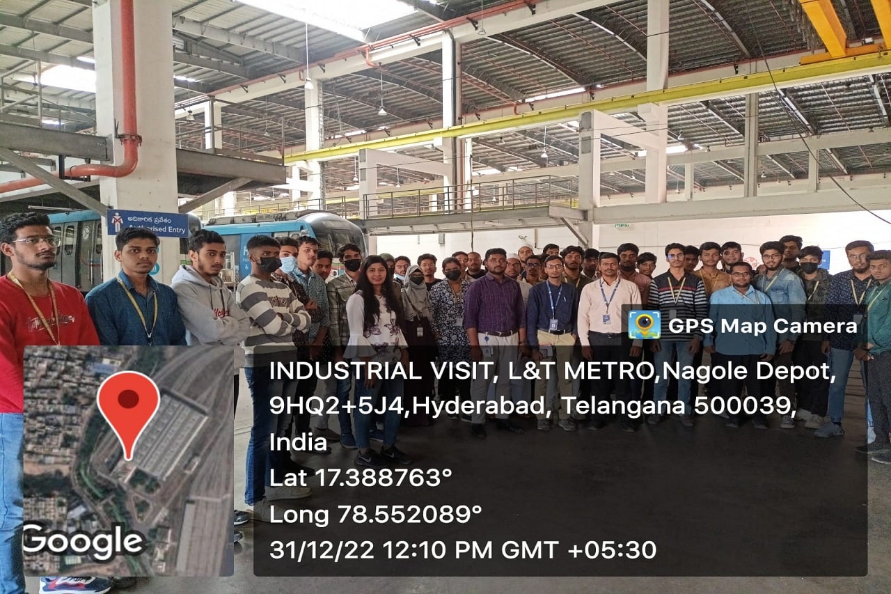 Industrial visit to “L&T Hyderabad Metro Rail Limited “, at Uppal Metro depot, Nagole , Hyderabad was organized by the Department of ECE on Saturday i.e., 31-12- 2022. Students got real time exposure about overall functioning of Railway.Along with 2 faculty members, 50 students visited the place by college bus.