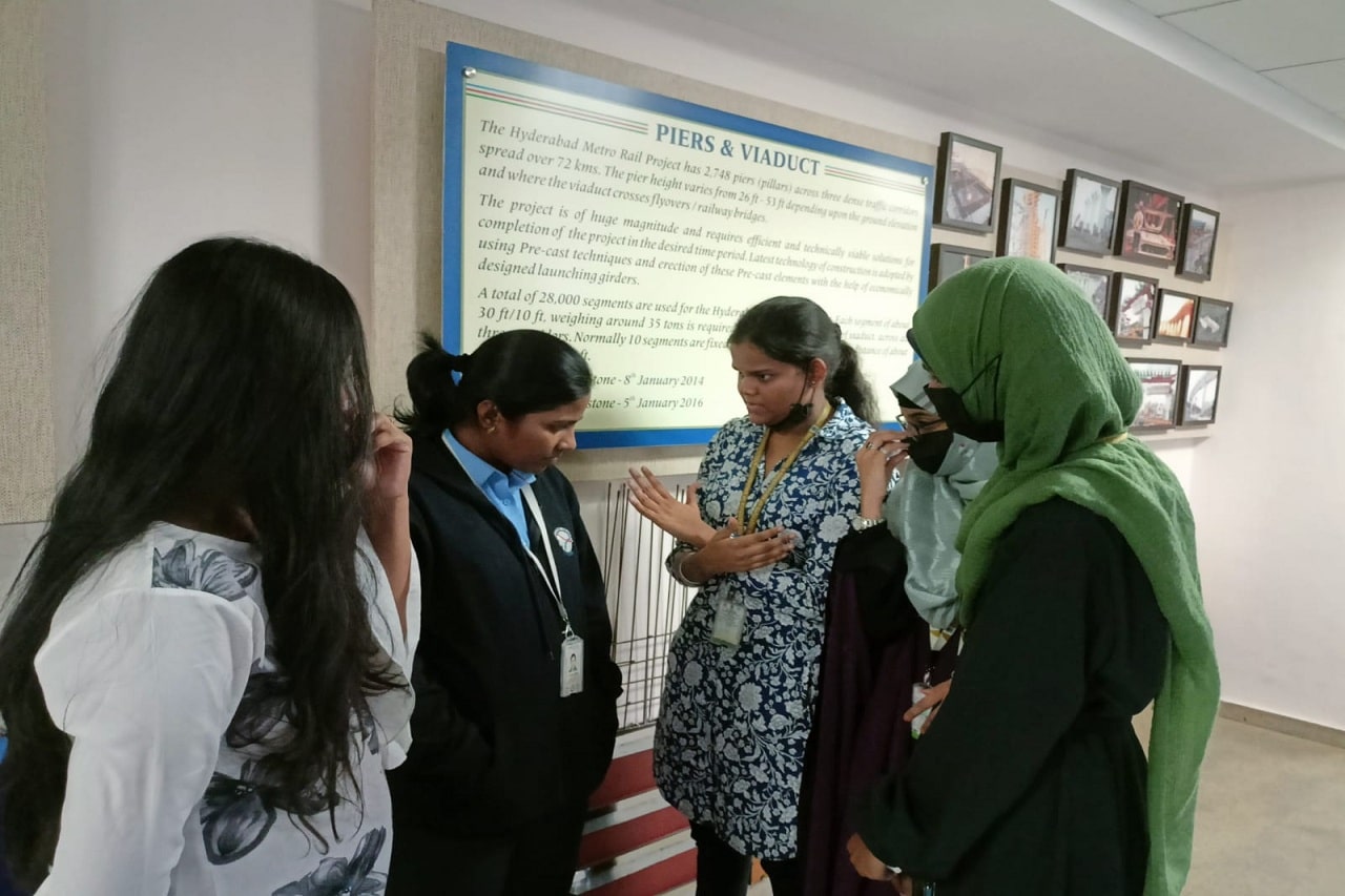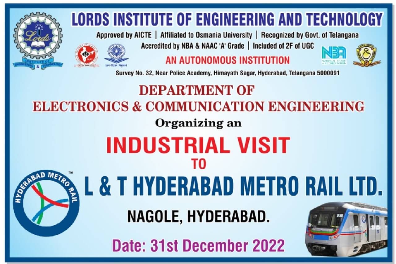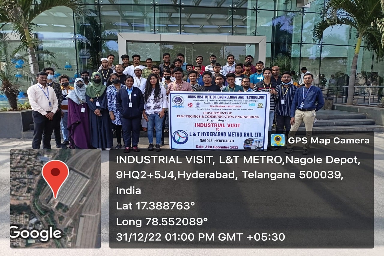 Industrial visit to “L&T Hyderabad Metro Rail Limited “, at Uppal Metro depot, Nagole , Hyderabad was organized by the Department of ECE on Saturday i.e., 31-12- 2022. Students got real time exposure about overall functioning of Railway.Along with 2 faculty members, 50 students visited the place by college bus.
