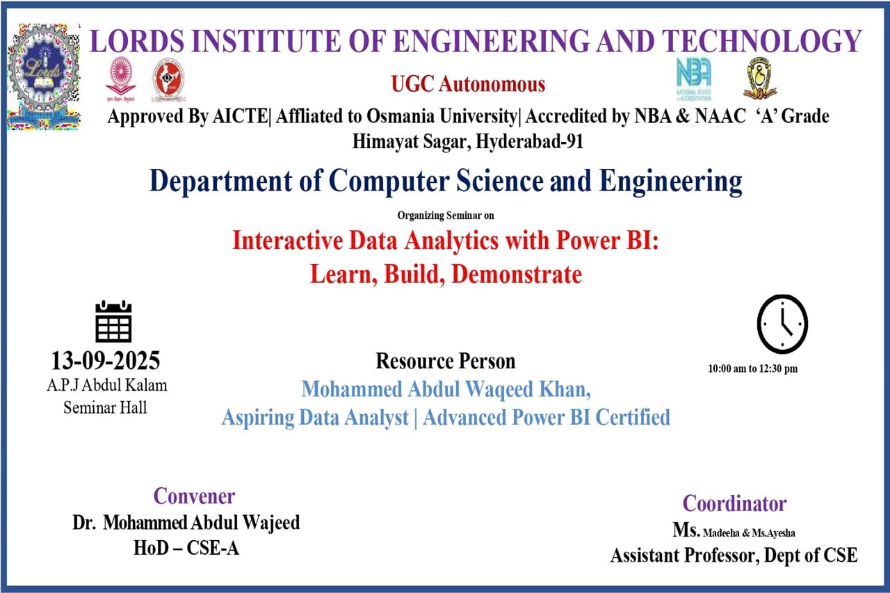 Resource Person: Mr. Mohammed Abdul Waqeed Khan, Aspiring Data Analyst | Advanced Power BI Certified
