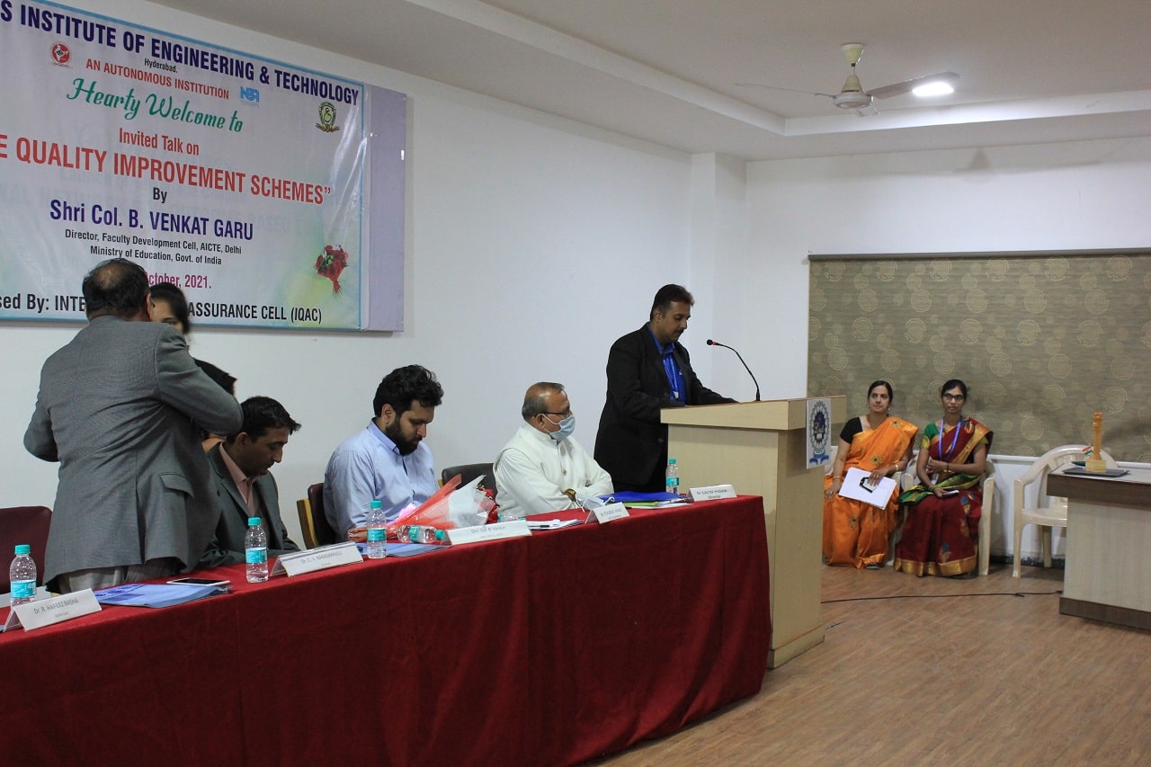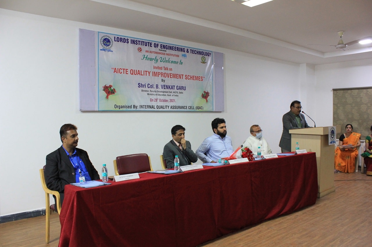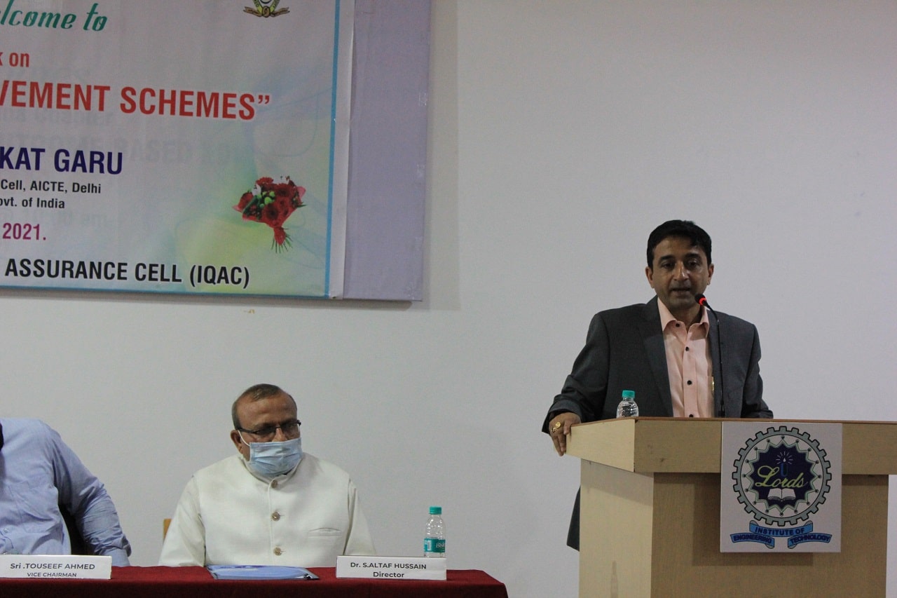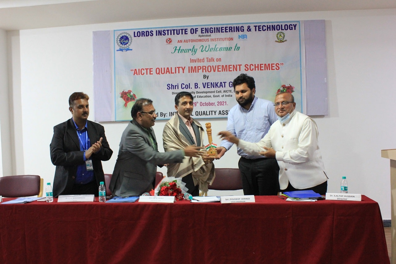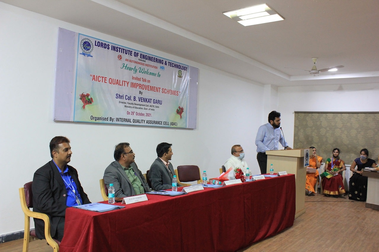 Description: Internal Quality Assurance Cell (IQAC), Lords Institute of Engineering and Technology (Autonomous), Hyderabad organized an Invited Talk on AICTE Quality Improvement Schemes (AQIS) for all the faculty members of the institution. During his talk the esteemed resource person from AICTE briefed about all the schemes under AQIS especially Research Promotion Scheme (RPS), Travel Grant Scheme for attending Conferences, Grant for organizing Conference, Best Teacher Awards, etc. He also addressed all the queries of the faculty members and motivated them to utilize the opportunities and apply for these schemes.