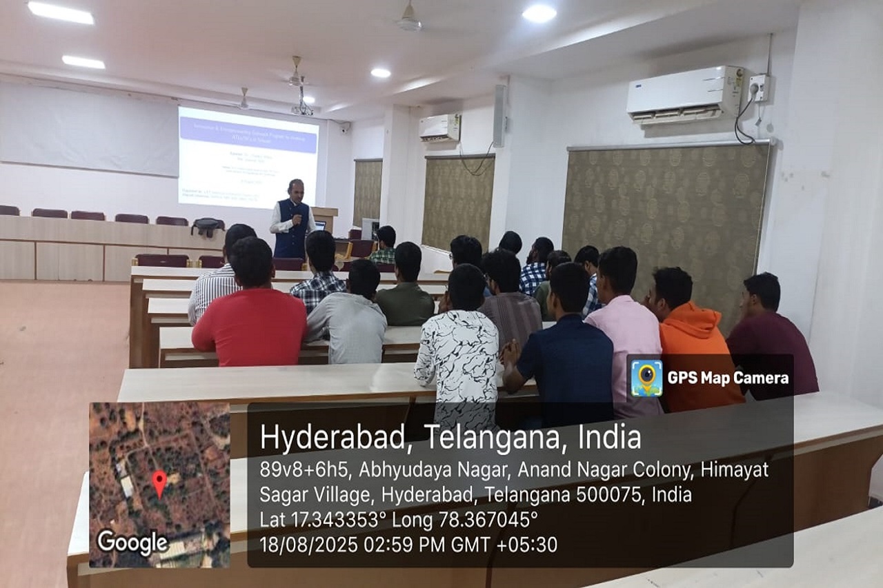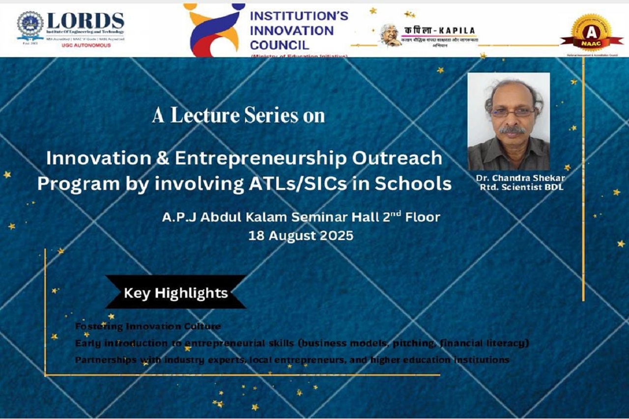 Description: On 18th August, 2025, an Innovation & Entrepreneurship Outreach Program was organized at LIET(A). Dr. Chandrashekar, Scientist at BDL was the chief guest. Event aimed at inspiring and educating students about entrepreneurship, innovation, and the support available through the Atal Tinkering Labs (ATL) and School Innovation Council (SIC).