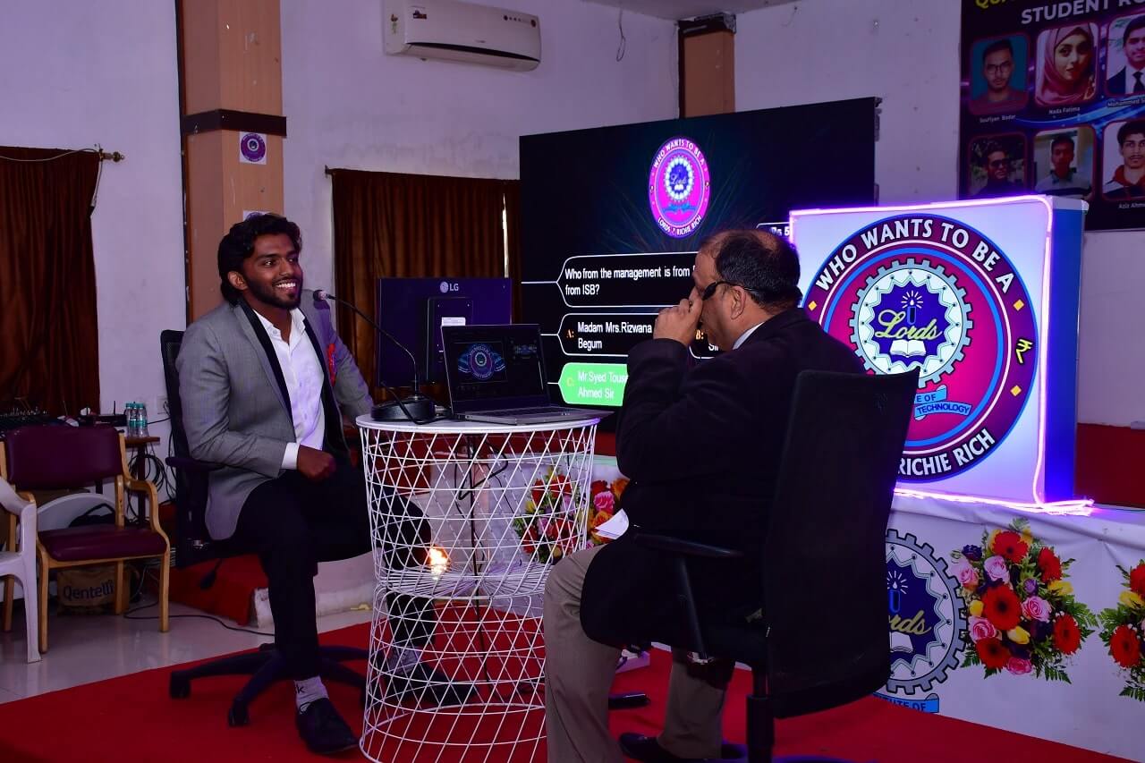 Department of Management Studies LSB conducted Who Wants To Be A Richie Rich Event for Students & Faculty. The year-end Bonanza was a first of it’s kind initiative by Lords Management to reward and motivate the eco system on campus. The event witnessed huge turnout of over 1000 student contestants vying to be in the HOT SEAT. With zeal and transparency, qualifying rounds were conducted for 8 engineering departments. There were 2 winners selected from each department, 16 Finalists from Students played Who Wants to be A LORDS Richie Rich. Faculty round contestants were 12 and they displayed zeal and played with caution to WIN ‘The Fastest Finger First”. Enthusiastic audience witnessed a scintillating display and awesome ambience. Everyone present watched the contestants play.Nonetheless, Audience also got a chance to win gift hampers and participate in audience poll, which helped contestants to win and move forward in competition
