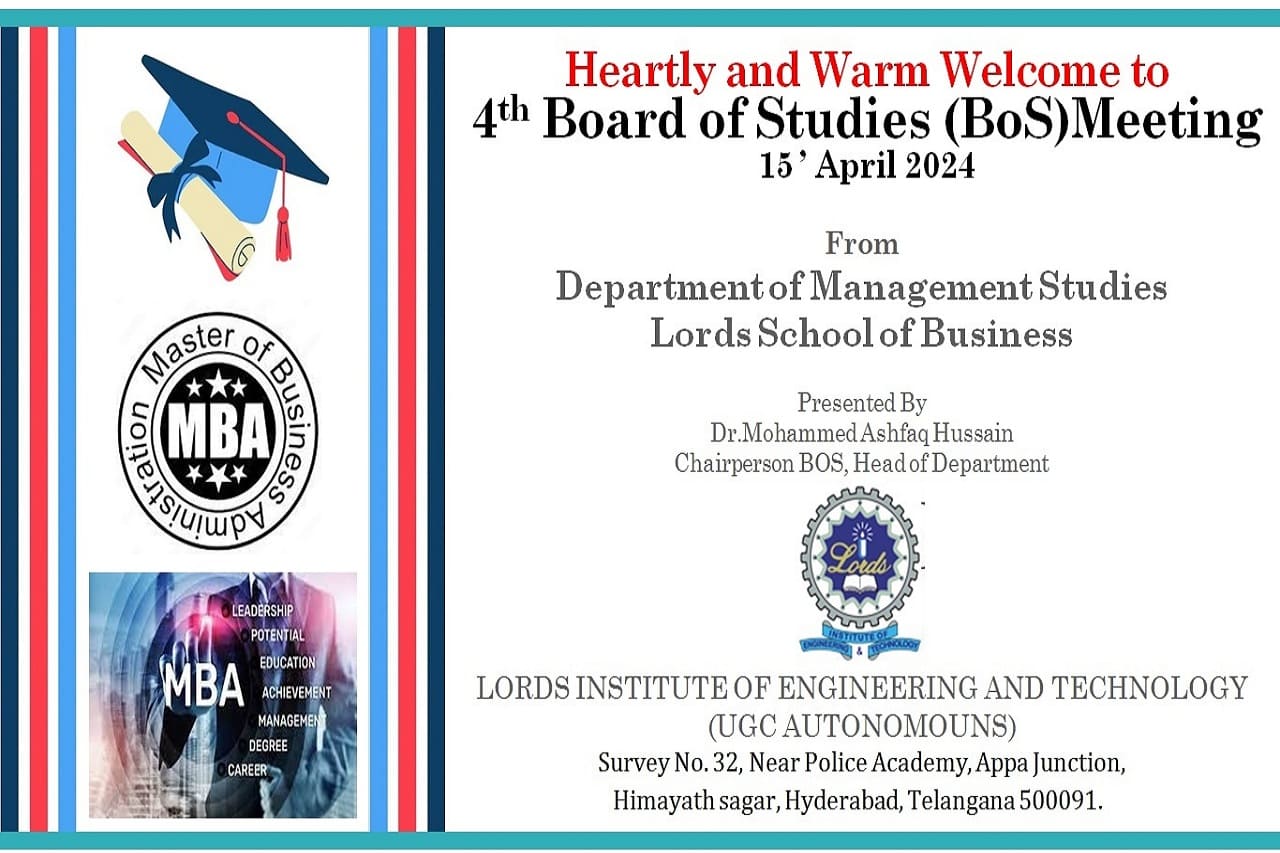 1 Dr. Mohammed Ashfaq Hussain Associate Professor & HOD, MBA, Lords Institute of Engineering and Technology Chairperson