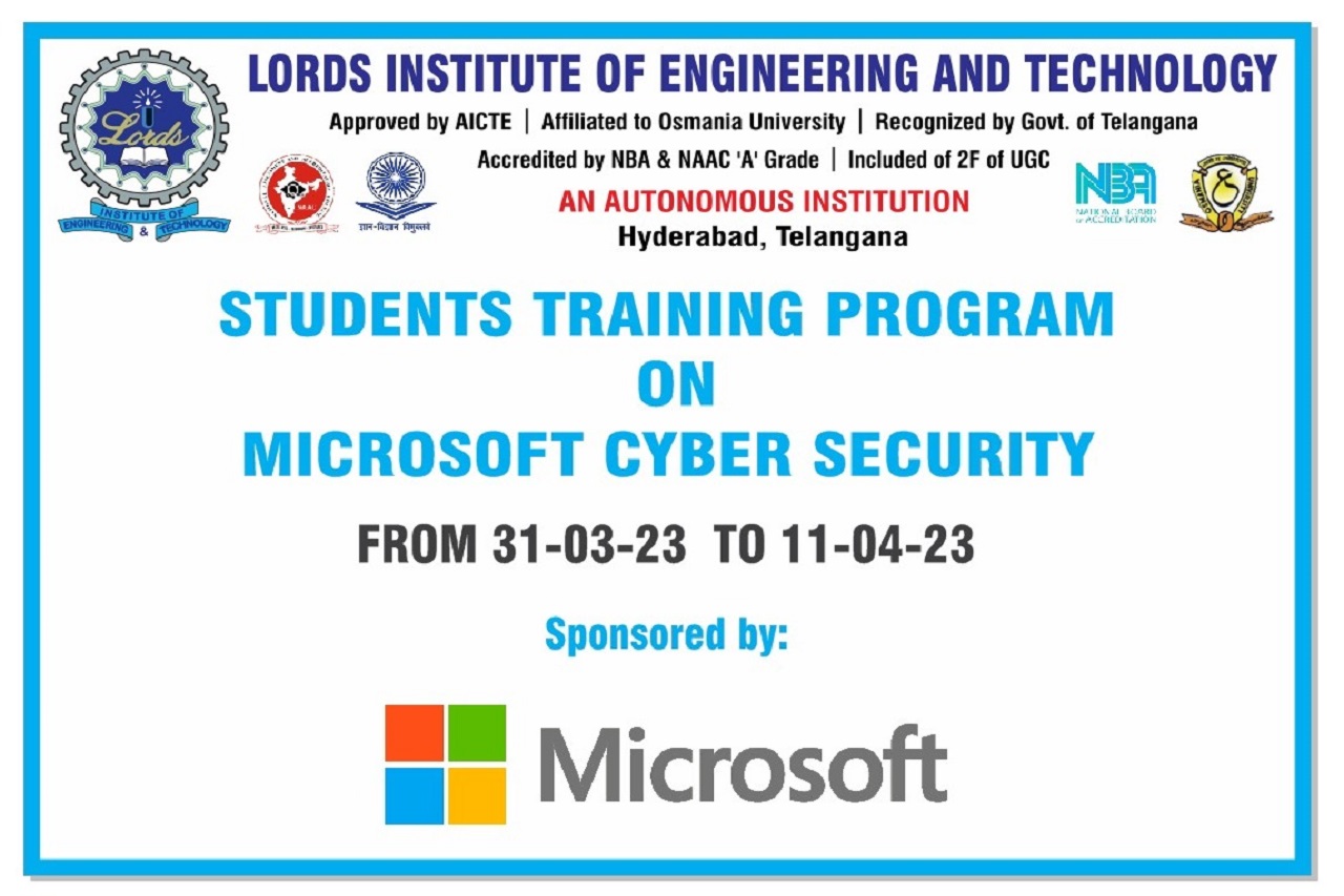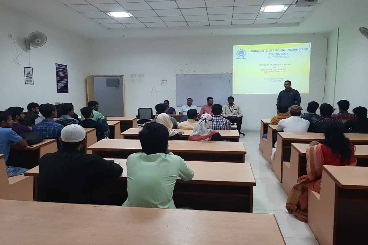 Lords Institute Of Engineering And Technology is an implementation institute for ICT Academy for the “Centre for Youth Empowerment” –under the Student Empowerment Program powered by Microsoft.Total 66 students of CSE,CSE-AIML,IT,ECE and EEE of 3rd and 4th year will be trained for 70 hours and certified in “Cyber Security”. Along with the management, Principal, Directors, Deans, HODs, ICT-State Head for Telangana and Andhra Pradesh was present during the inauguration function on 31/03/23.