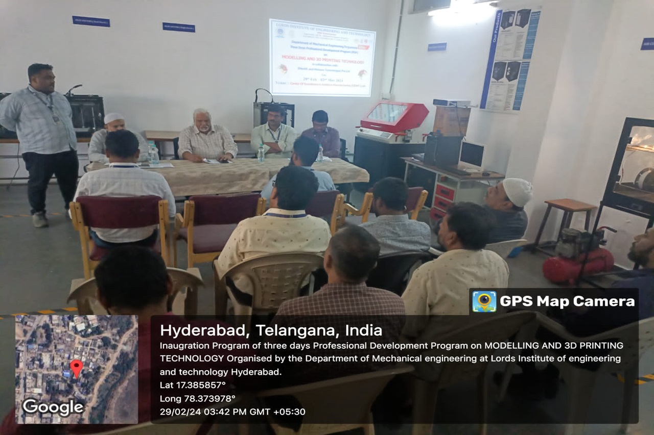 Resource person: Mr. Madhukar S., Asst.Professor, Mechanical Department., Lords Institute of Engineering & Technology, Hyderabad.