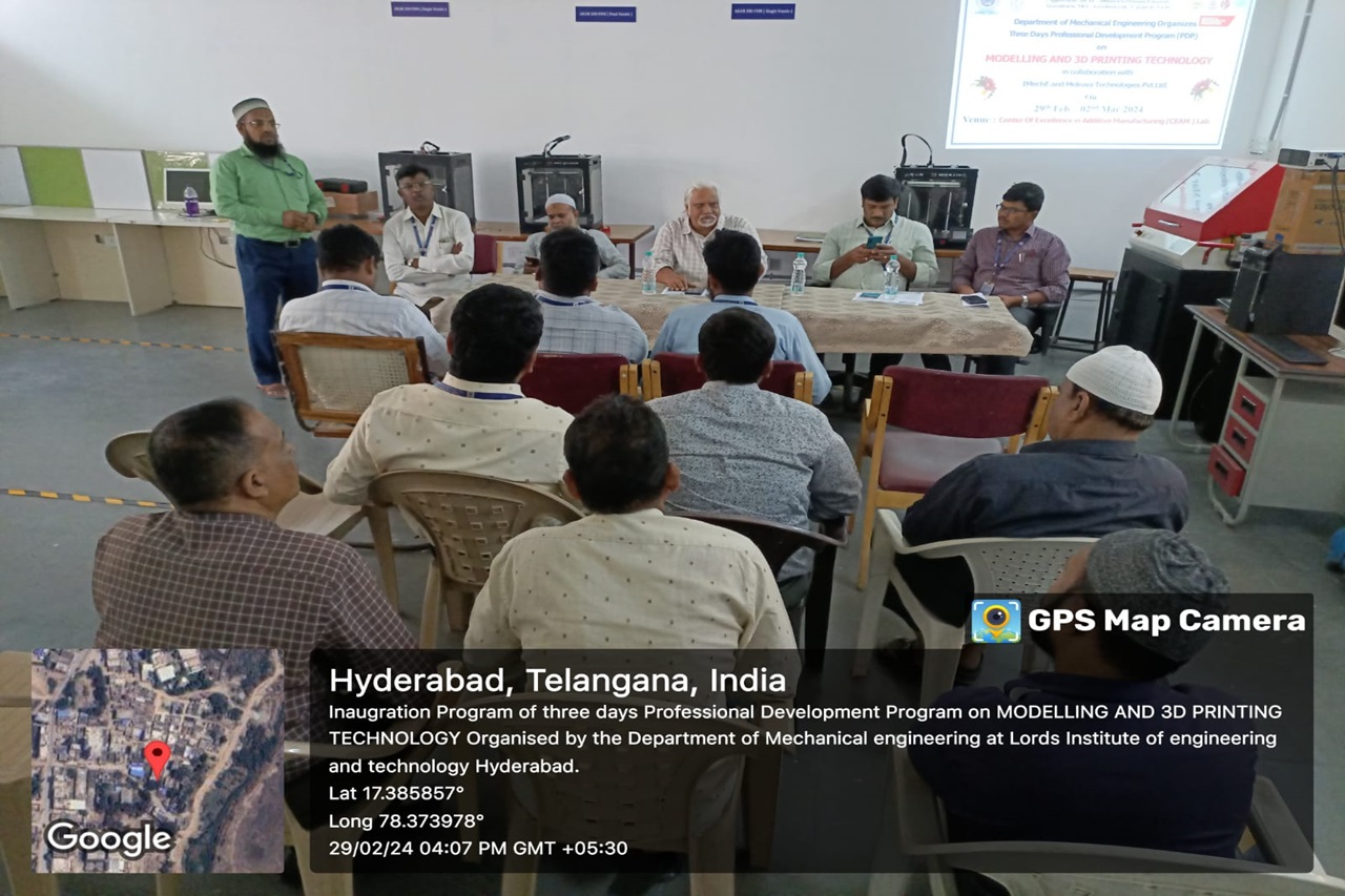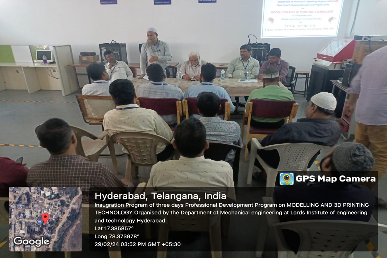 Description: The Department of Mechanical has organized a 3 days Professional Development Program (PDP) on Modelling and 3D Printing Technology in collaboration with IMechE and Mekuva Technologies
