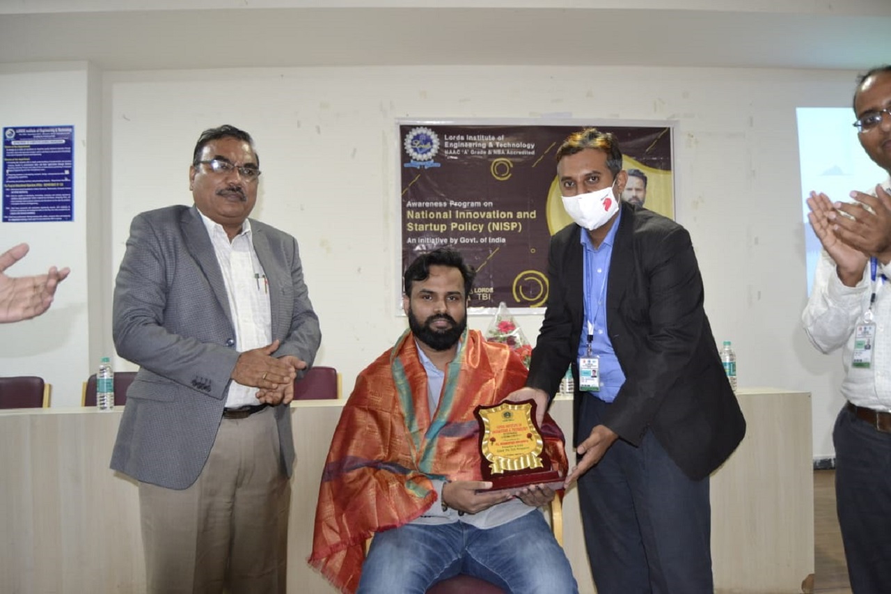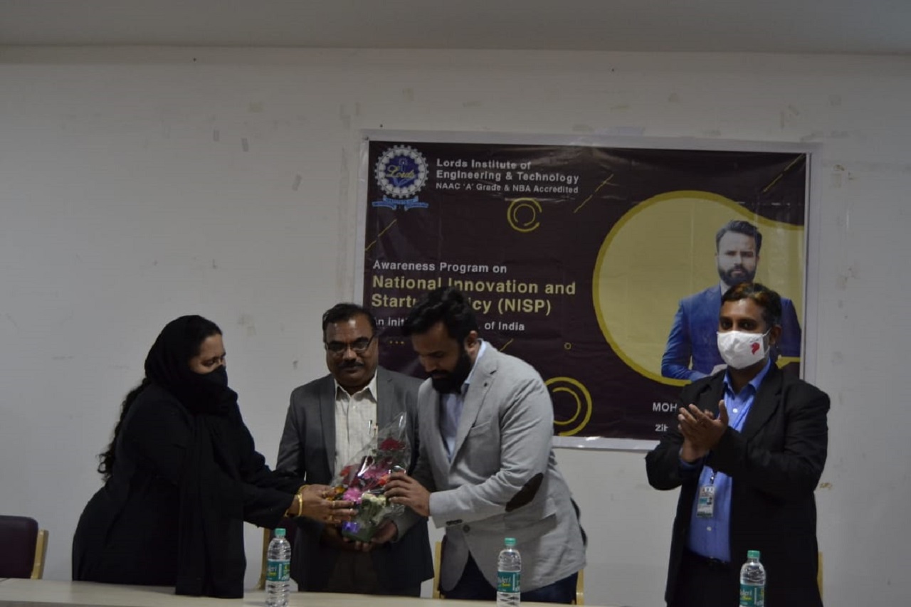 Mr. Mohammed Abubakr introduced the business history of India and explained the NISP to students and faculty. He compared it with the ease-of-business policies of Singapore where his company is registered. He encouraged students to come with innovative ideas which have the potential to become start-up companies. He appreciated the facility created by the Lords Institute of Engineering and Technology for the benefit of students. Dr. Hafeez Basha felicitated the Guest and Dr. Anees Sultana, HOD-MBA gave the vote-of-thanks.