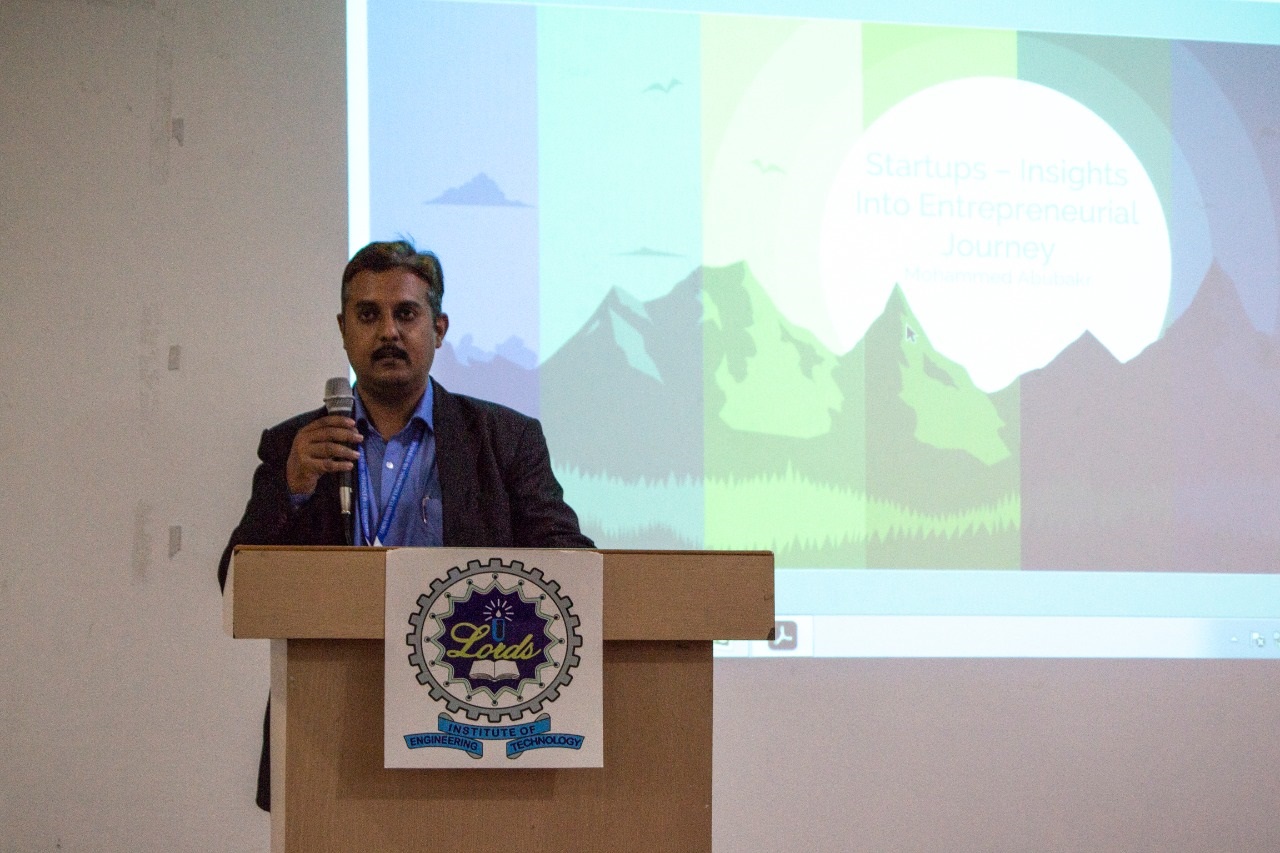 It is an initiative of the All India Council for Technical Education (AICTE), Ministry of Education, Government of India. As directed by the Institute Innovation Council (IIC) of the Lords Institute of Engineering and Technology, Hyderabad, Entrepreneurship Development Cell (EDC) has conducted an awareness program on 24th Feb 2020. Mr. Mohammed Abubakr, Founder & CEO, Zibew Software Pte. Ltd., Singapore was invited as a resource person who was available in Hyderabad.