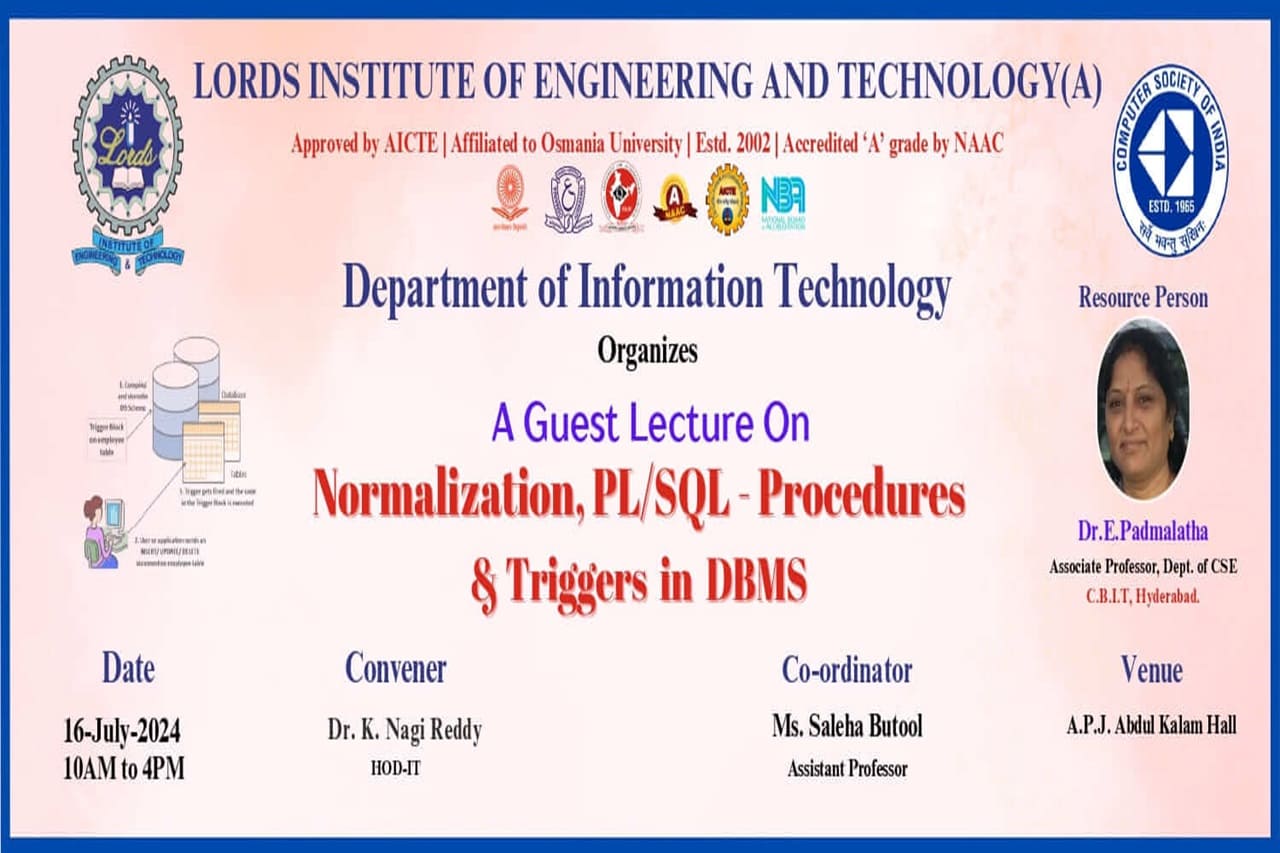 Title of the event:Normalization, PL/SQL-Procedures & Triggers in DBMS