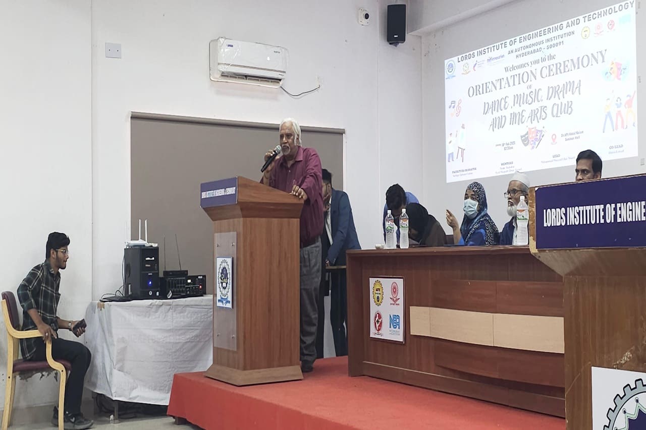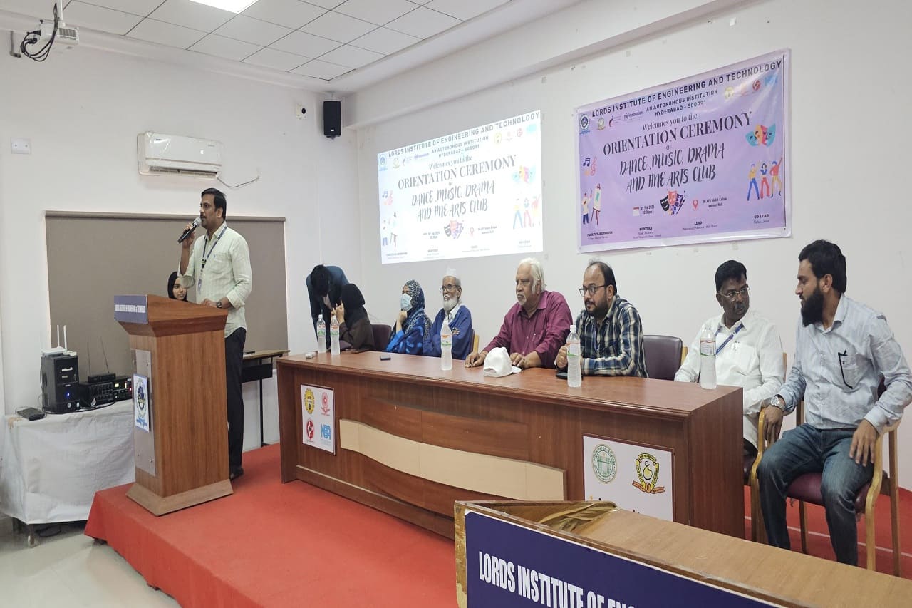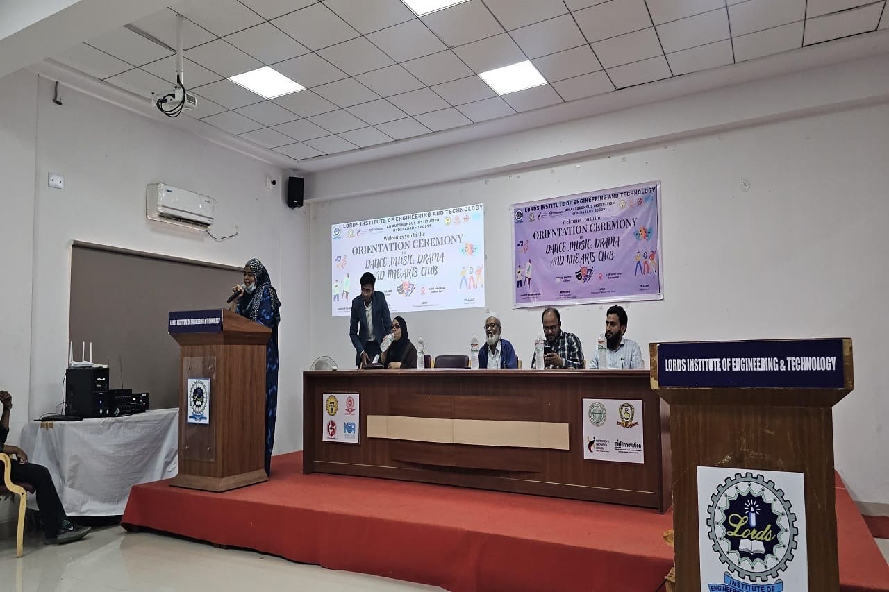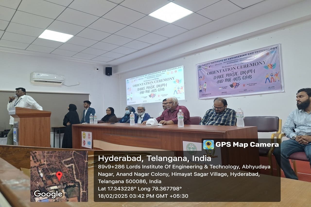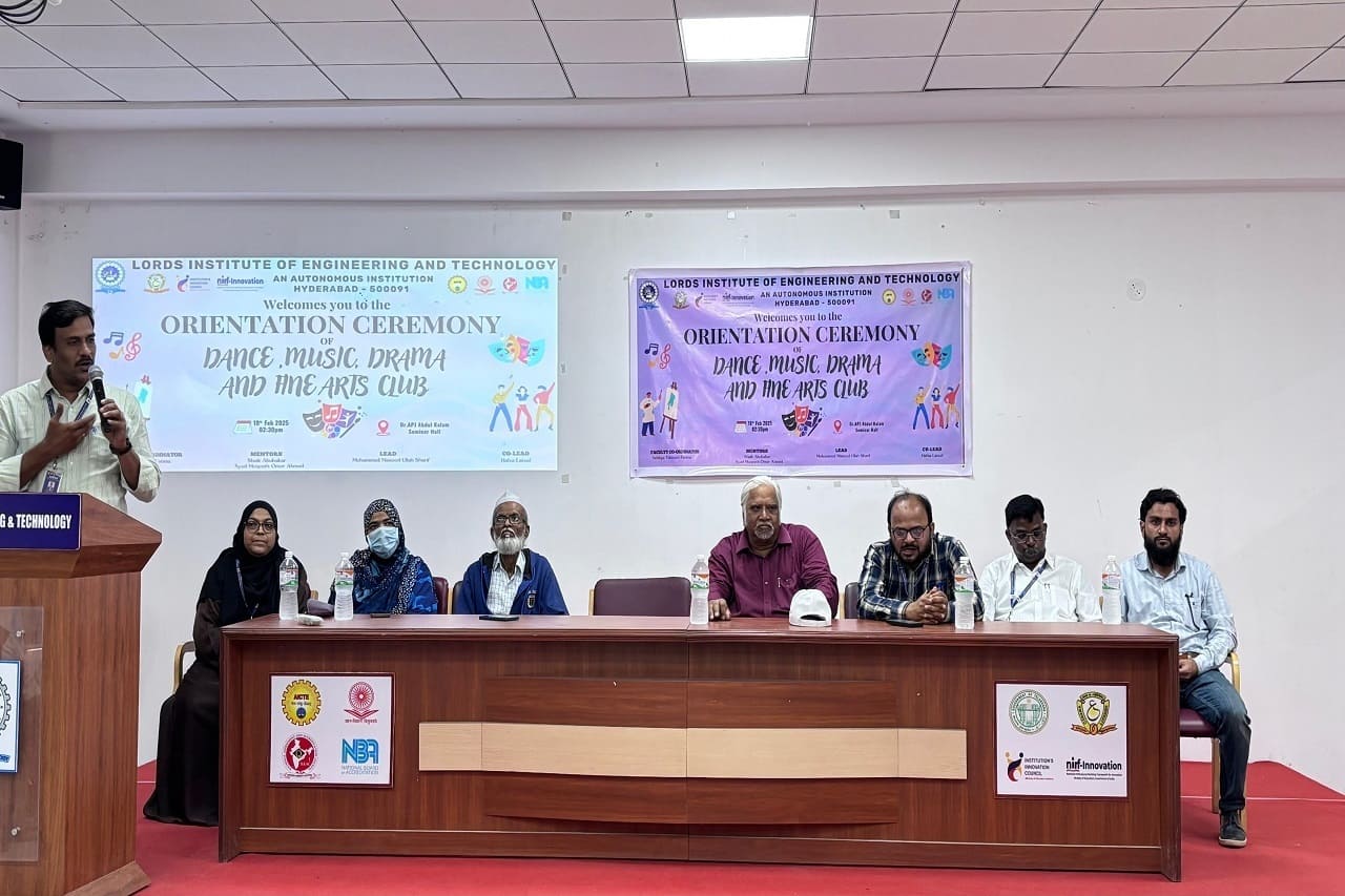 Description about the event (50 Words): The Dance, Music, Drama, and Fine Arts Club of Lords Institute of Engineering and Technology (Autonomous) hosted an Orientation Ceremony on February 18, 2025. With the enthusiastic participation of over 200 students and faculty members, the event served as a platform to introduce various artistic disciplines and upcoming activities. The ceremony featured engaging performances and interactive sessions, fostering creativity and collaboration among attendees.