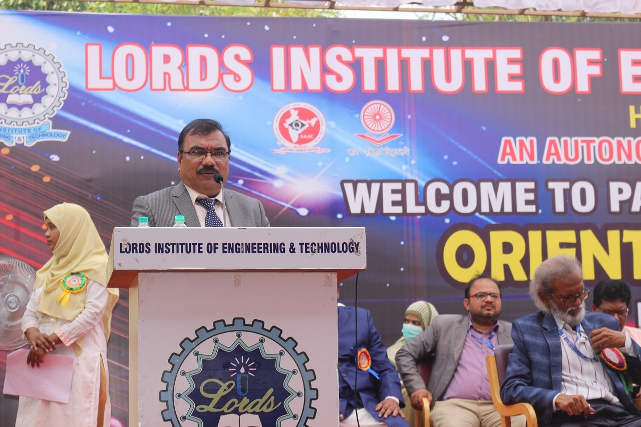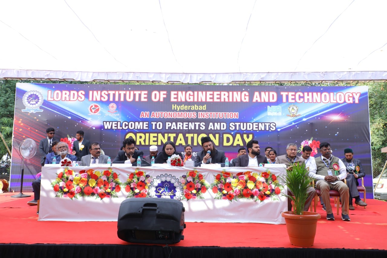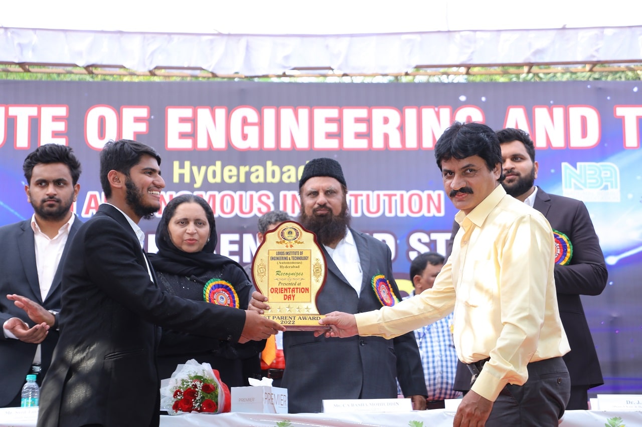 Lords Institute of Engineering & Technology has organized Orientation Programme for 2nd Autonomous Batch on 5th Nov 2022 from 10.00am at their campus. The principal Dr. C.V.Narasimhulu addressed the gathering with a welcome note. The Chairman,Janab C.A.Basha Mohiuddin congratulated and was thankful to the parents and choosing LIET. The secretary,Mrs.Rizwana Begum provided information about the resources available and to be utilized by every student. The Vice-chairman, Mr.Syed Touseef Ahmed asked students to utilise the service of TBI & E-cell so that they develop entrepreneurship skills. The Joint Secretary, Mr.C.A Syed Tanvir Ahmed enlightened the audience the pass percentage for I-B.E SEM-II is 66.67% and 98% of the students promoted to 2nd year. All the HODs, Deans, Directors and Associate Directors and all the faculty were present on the occasion. Around 2700 parents along with their ward attended the programme. The programme concluded with prize distribution to the Academic Toppers and Best parents Awards.