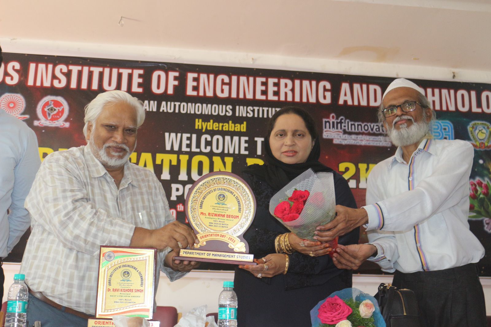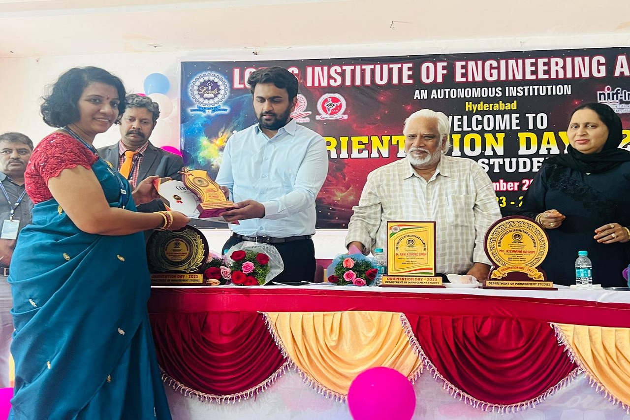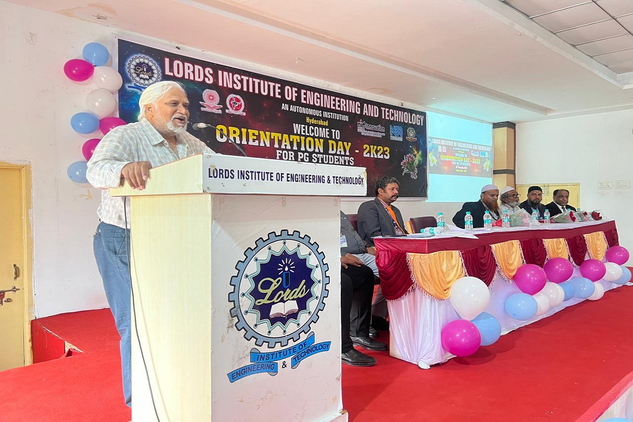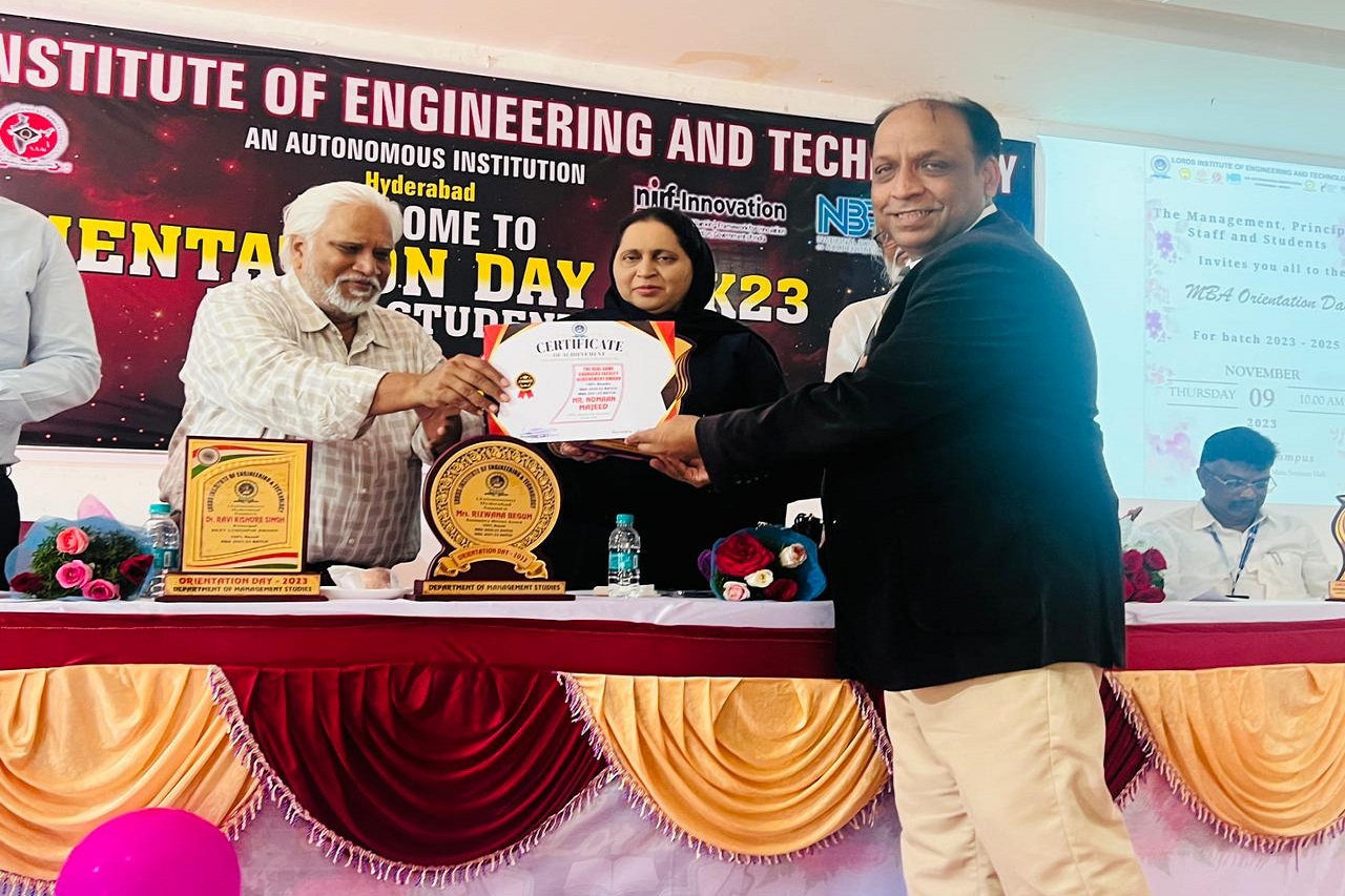 Lords Institute of Engineering and Technology (A) ushered in a new academic year with an eventful Orientation Day on November 9, 2023, welcoming the incoming MBA students of the 2023-2025 batch. 200+ Students are participated in Orientation day event.The event was graced by distinguished guests, including the Secretary of LIET, Rizwana Begum, Joint Secretary, Mr.CA Syed Tanvir Ahmed, and the esteemed Principal, Dr. Ravi Kishore Singh.