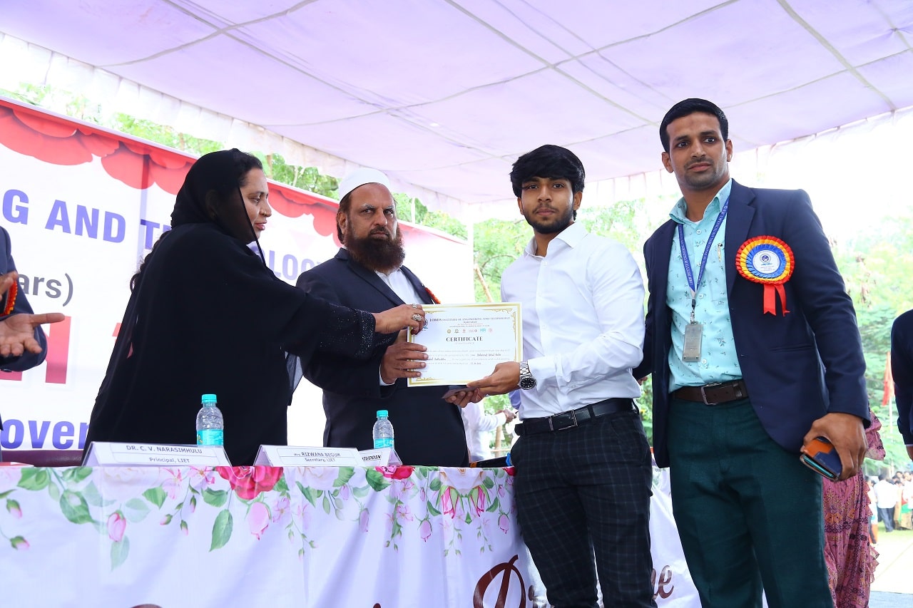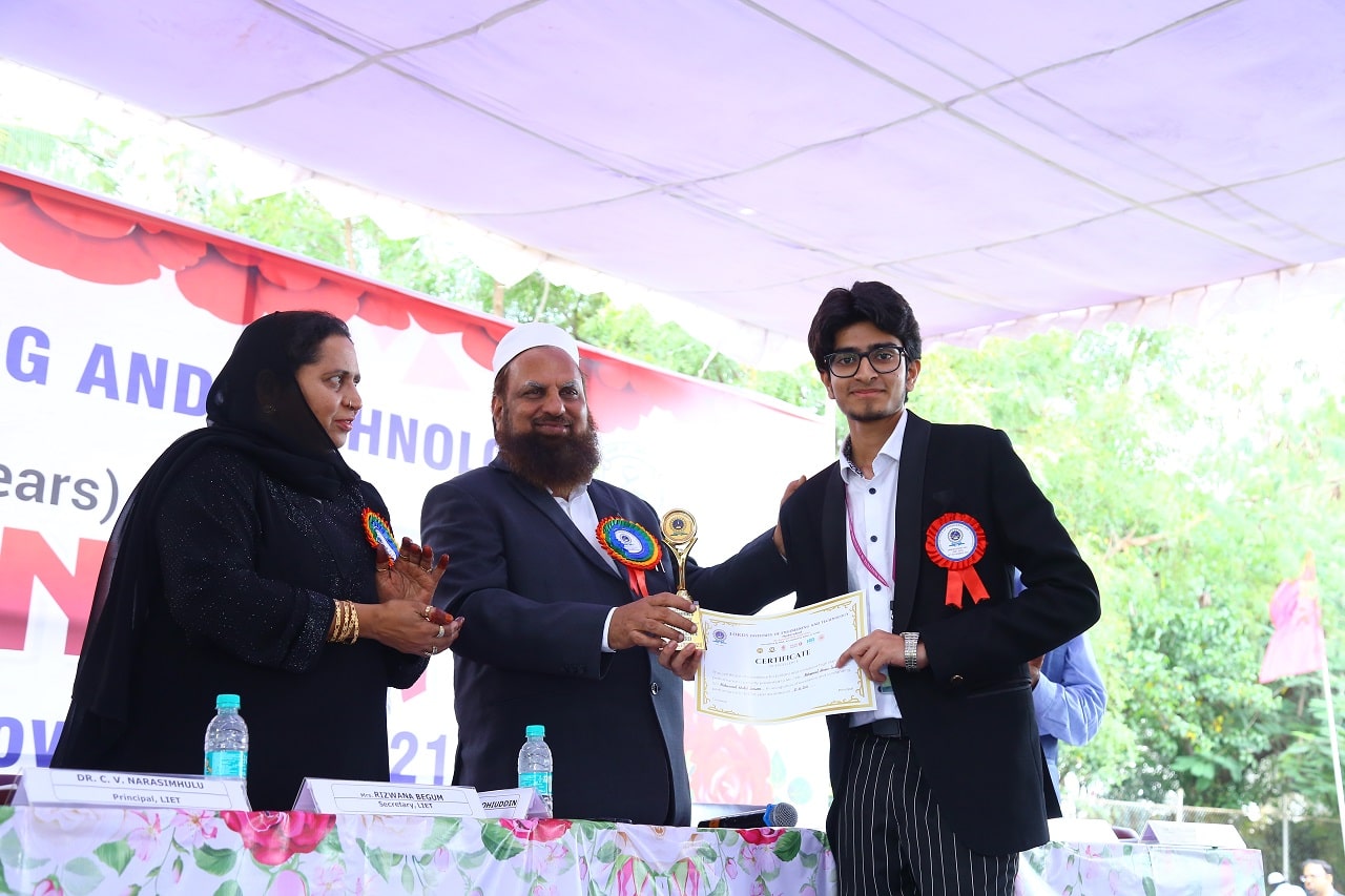 Chief Guest:Mr. Basha Mohiuddin (Founder & Chairman), Mrs. Rizwana Begum (Secretary),Mr. Syed Touseef Ahmed(Vice-Chairman), LIET