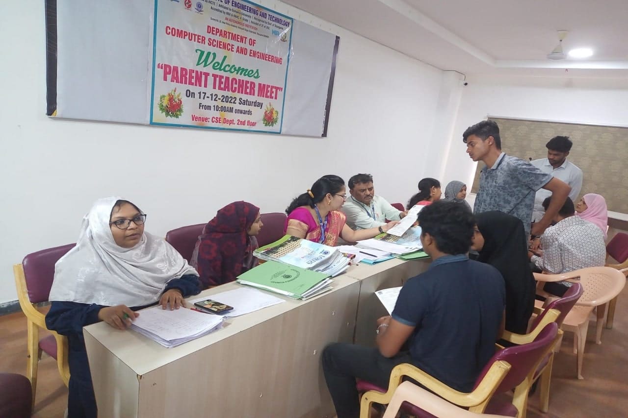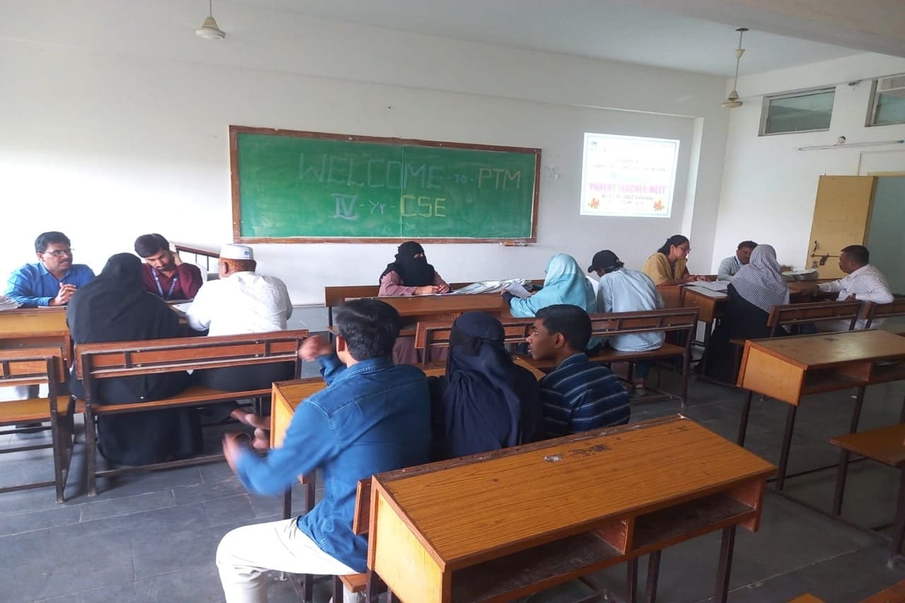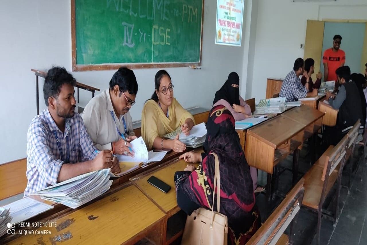 Description: Department of CSE Parent Teacher Meeting (PTM) was conducted on 17th December, 2022. The CSE Seminar Hall was allocated for 2nd Semester, Room No. 219 for 5th Semester and Room No. 218 for 4th Semester students. The academic progress of the students, their performance in CIE-1, attendance percentage, previous semester results, activities conducted in the college, CRT training, placements and professional bodies membership were discussed with the parents. Parents and students were counseled on how much time to spend for studies on daily basis to prepare to get good marks in the examinations. The third and fourth year students were also suggested to enrol in advanced programming courses, beyond the syllabus to get job ready at the end of their engineering course. Feedback, remarks and suggestions were taken from parents as well. The progress report for the current semester was handed over to the parents.