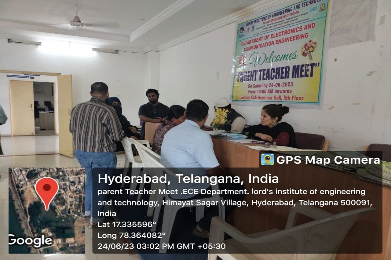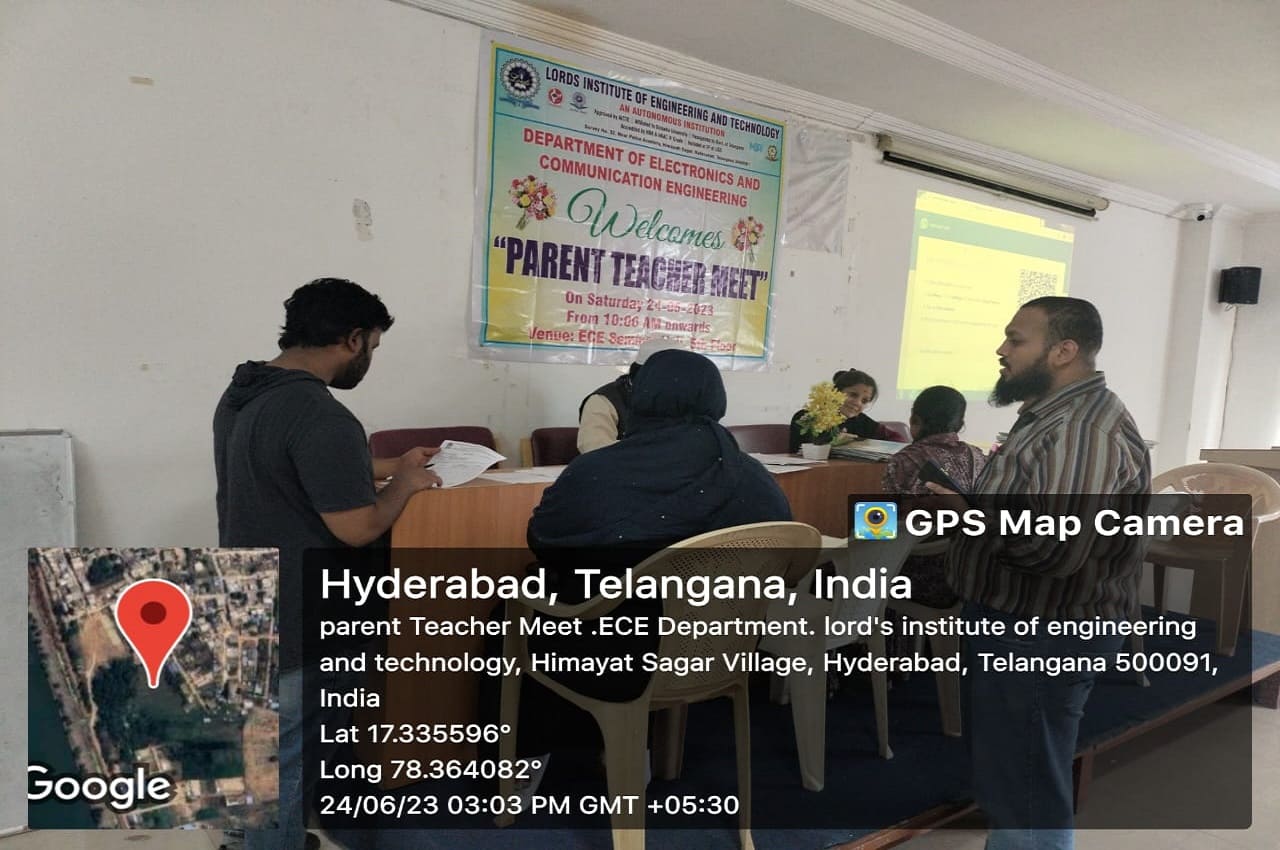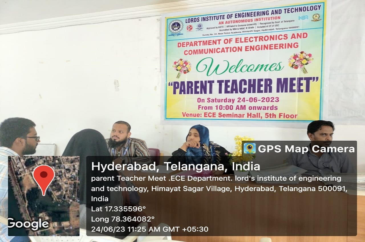 Description about the event (50 Words): The EEE Department at Lords Institute of Engineering and Technology organized a successful Parent-Teacher Meeting on 24-06-2023. The event provided an excellent platform for parents and teachers to interact, discuss academic progress, and address any concerns. It fostered a collaborative environment, ensuring the holistic development of students in the electrical and electronics field.