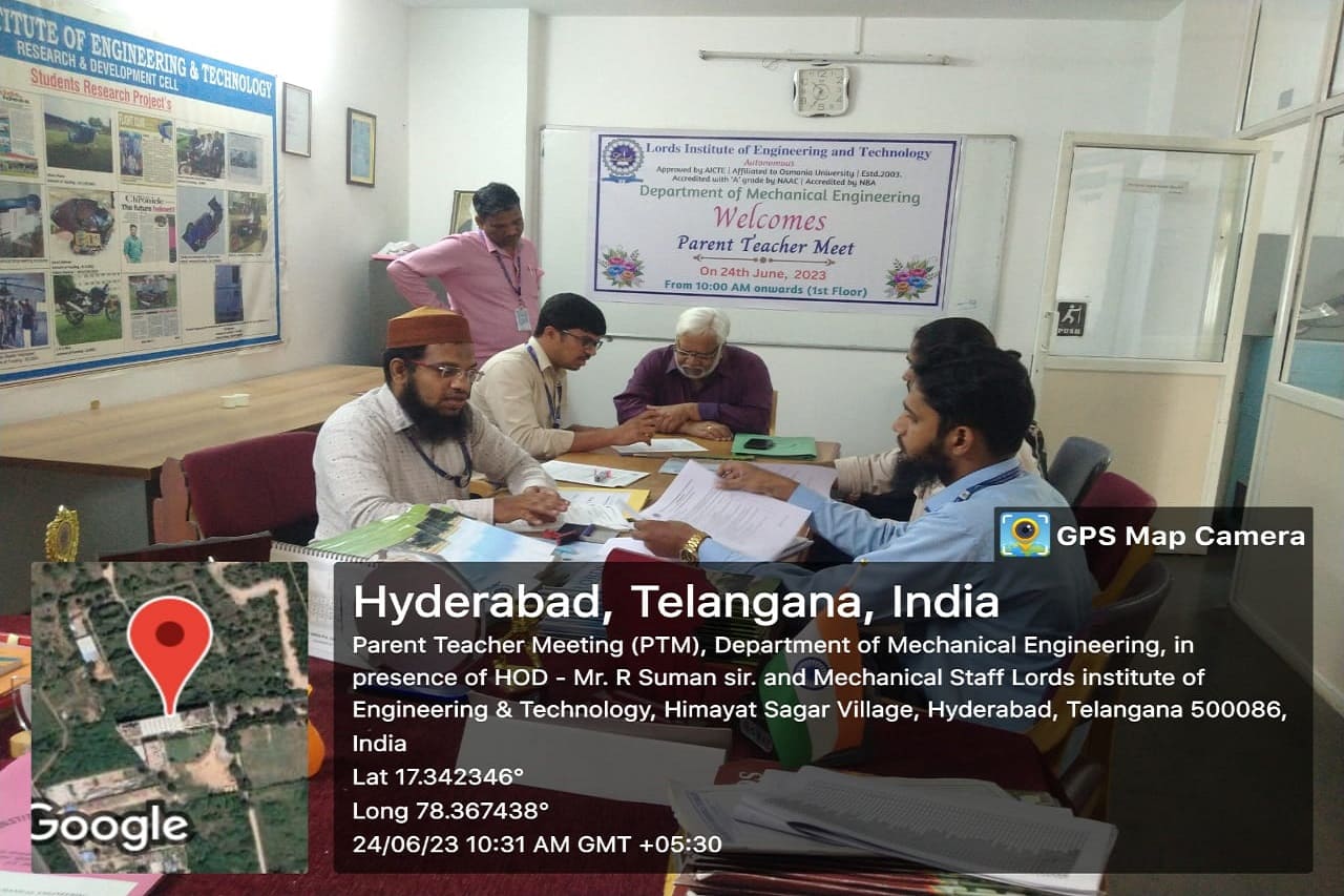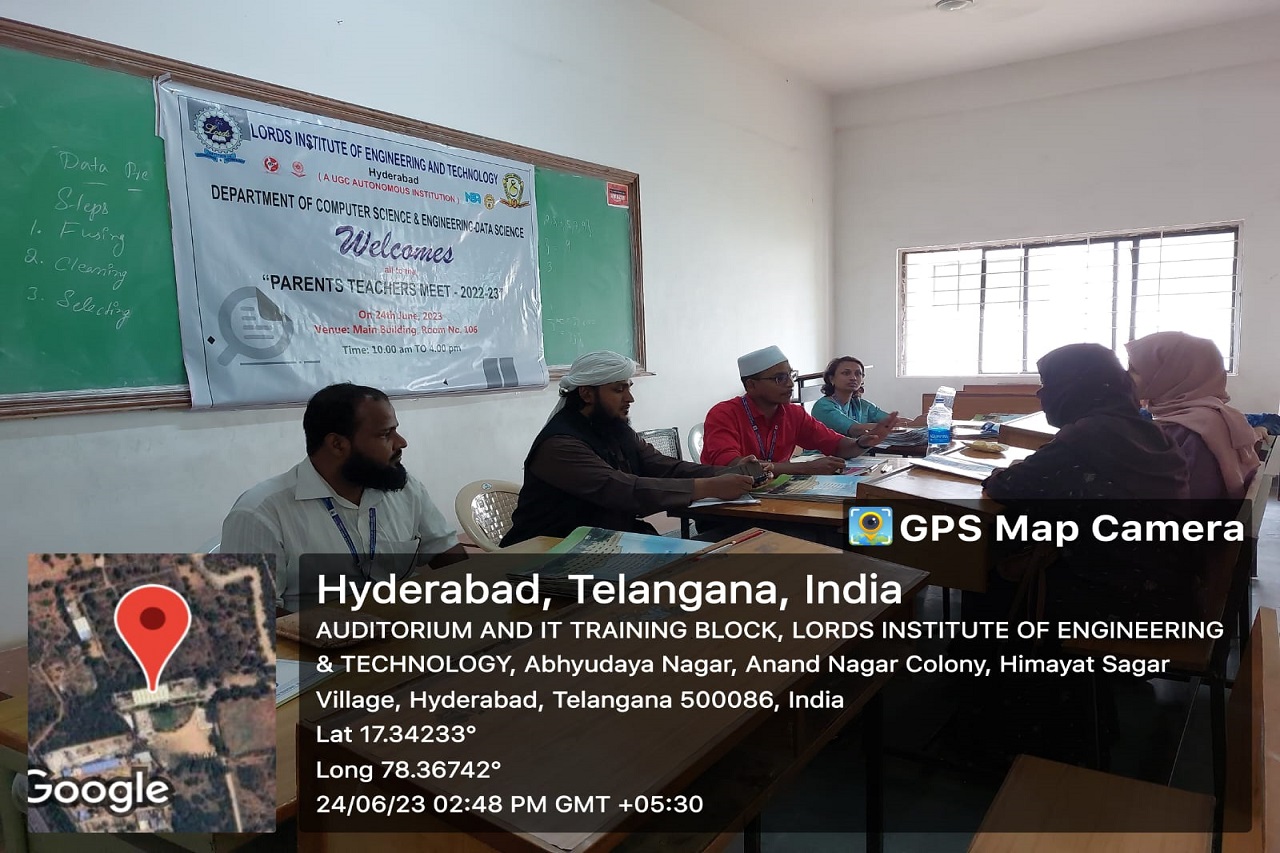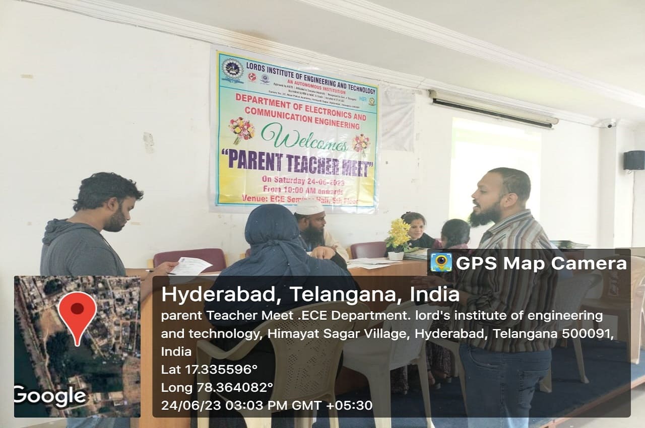 Description about the event (50 Words): The EEE Department at Lords Institute of Engineering and Technology organized a successful Parent-Teacher Meeting on 24-06-2023. The event provided an excellent platform for parents and teachers to interact, discuss academic progress, and address any concerns. It fostered a collaborative environment, ensuring the holistic development of students in the electrical and electronics field.