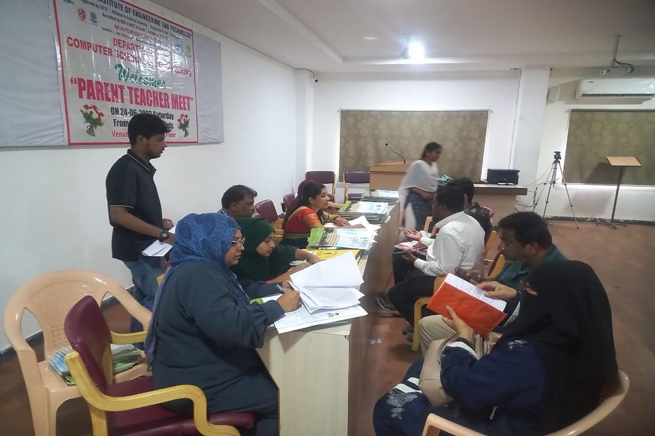 The Parent Teacher Meeting of the CSE department was conducted on 24th JUNE 2023, in CSE Seminar Hall 202 room for 4th Sem 2nd year students. The academic progress of the students, their performance in CIE-1, attendance percentage, previous semester results, activities conducted in the college, guess lectures, technical training, placements and professional bodies membership were discussed with the parents. Parents and students were counselled on how much time to spend on daily basis to prepare to get good marks in the exam. 2nd-year students were also suggested to enrol in advanced programming courses, beyond the syllabus to get job ready till the end of their engineering course. Feedback, remarks and suggestions were taken from parents as well. The progress report for the current semester was handed over to the parents. Those students having consistently less attendance are recognised and counselled students and informed parents to send their wards regularly.