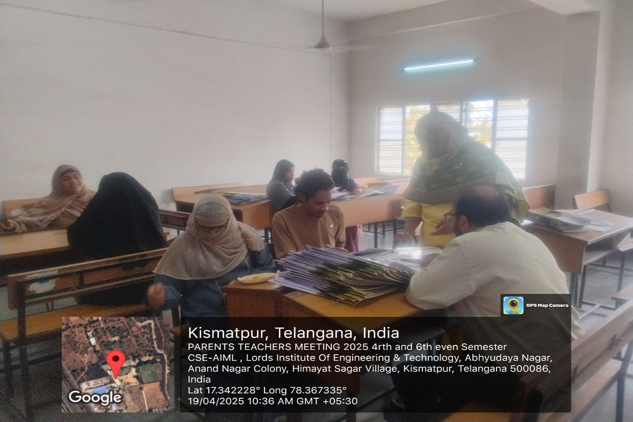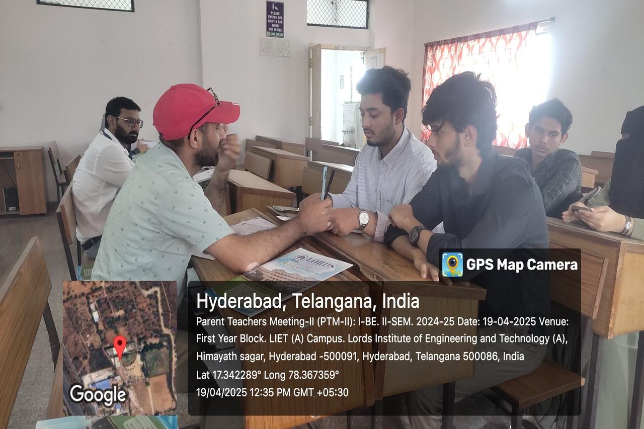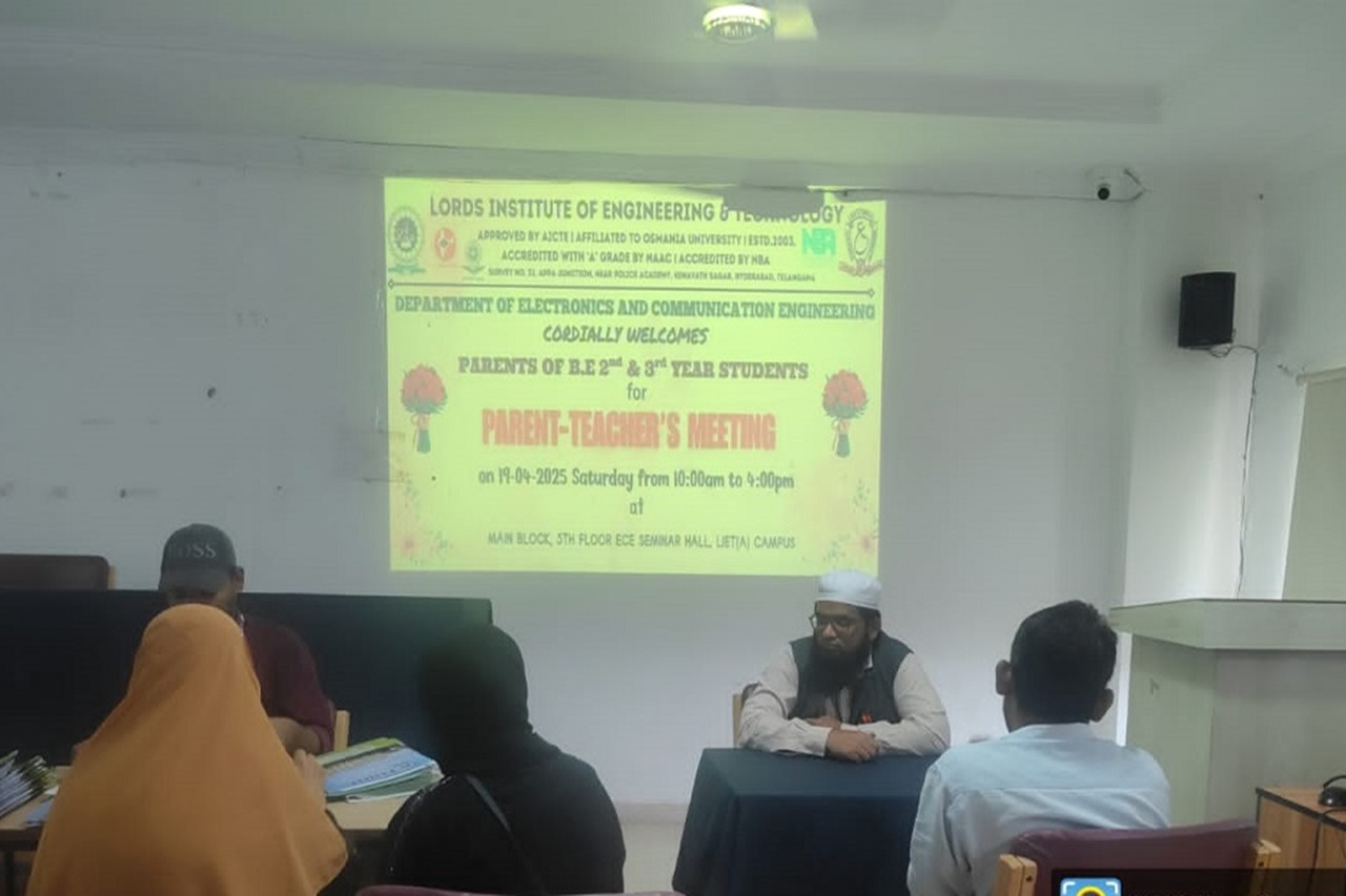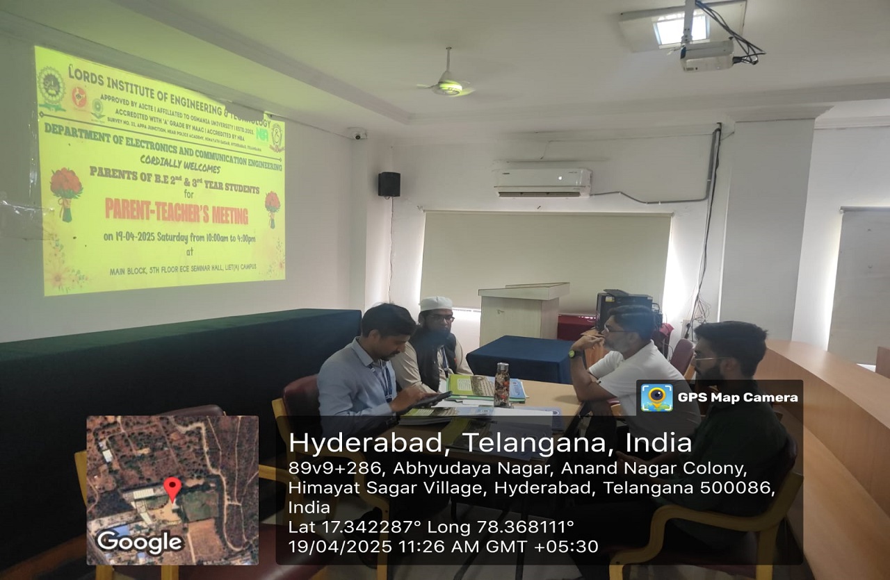 Description: The Department of ECE at Lords Institute of Engineering and Technology (A) conducted PTM on 19th April 2025. A total of 20 parents along with student attended PTM.They have given their feedback and we informed them regarding the attendance of student if someone have less then they shoud attend classes regularly.Along with this given the progress report card of each student.
