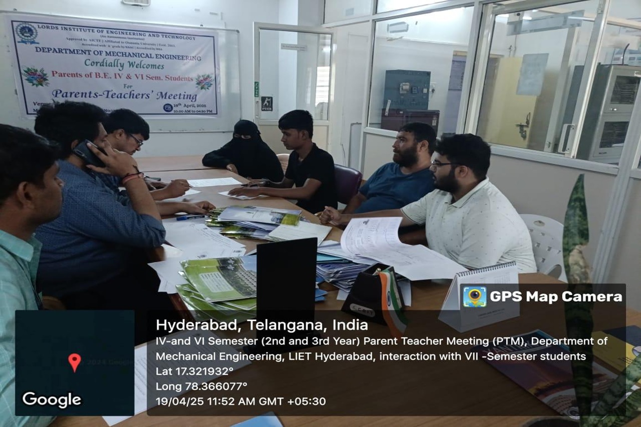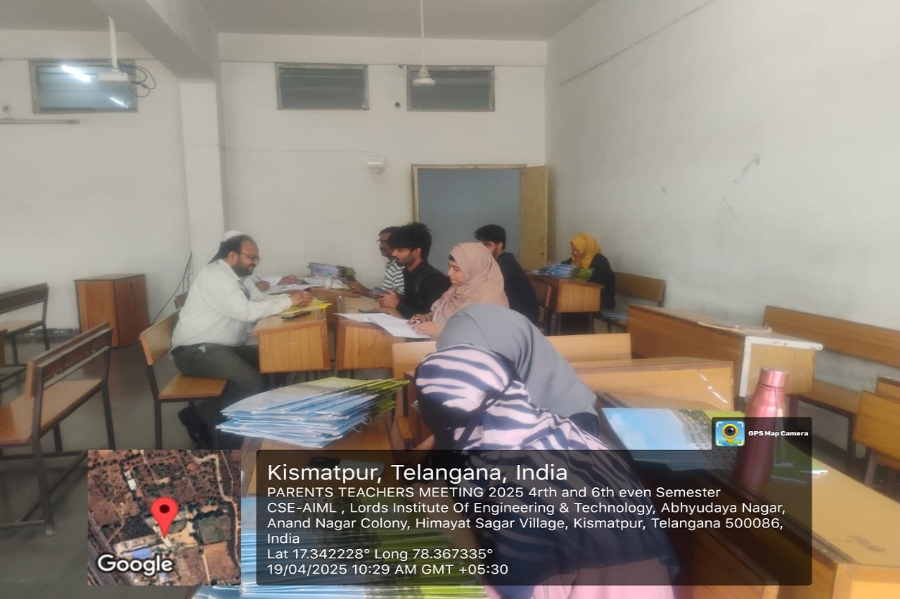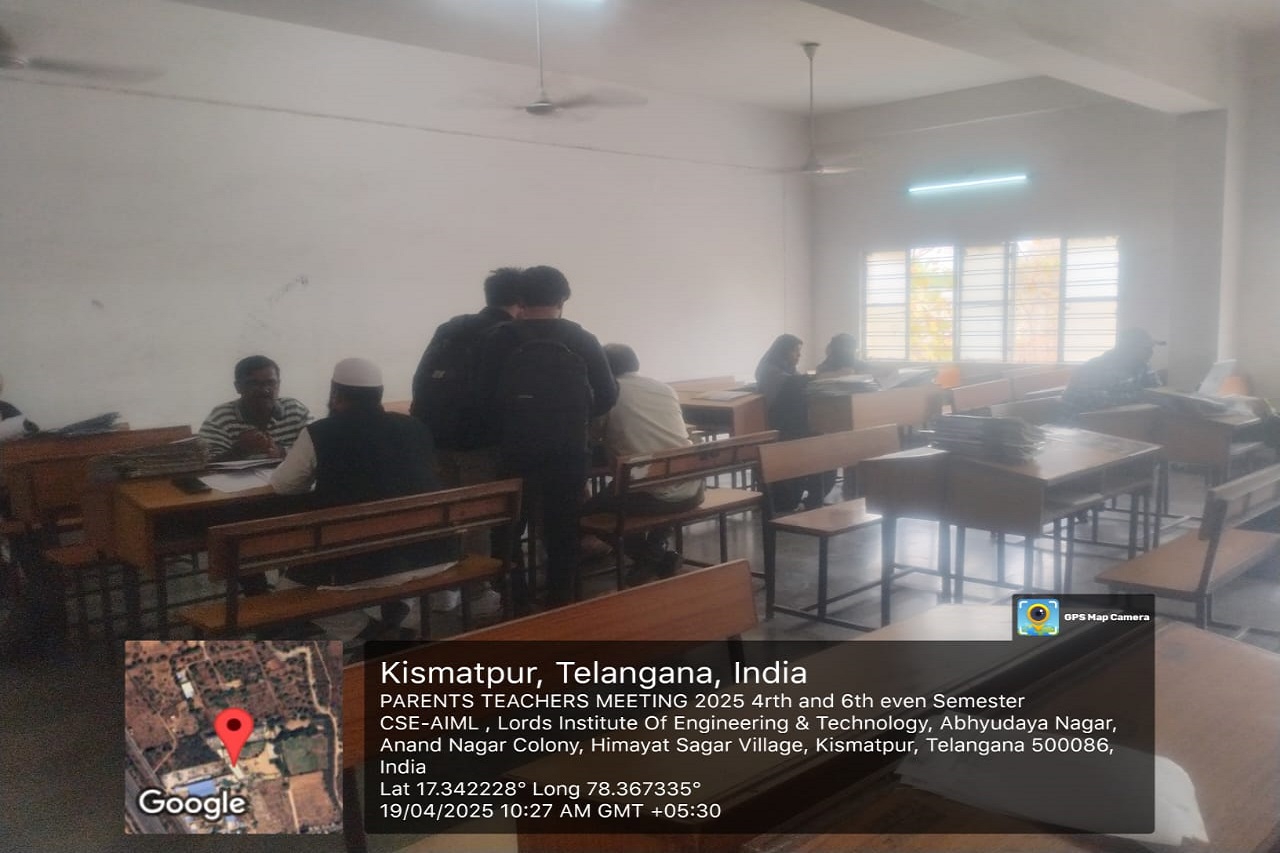 Description: The Department of ECE at Lords Institute of Engineering and Technology (A) conducted PTM on 19th April 2025. A total of 20 parents along with student attended PTM.They have given their feedback and we informed them regarding the attendance of student if someone have less then they shoud attend classes regularly.Along with this given the progress report card of each student.