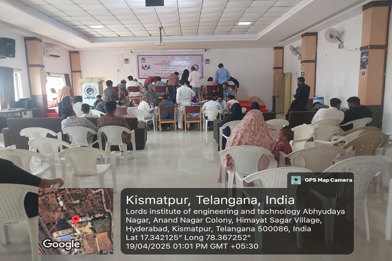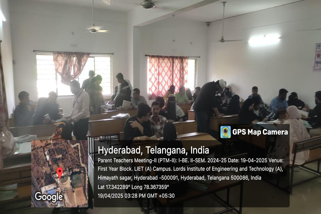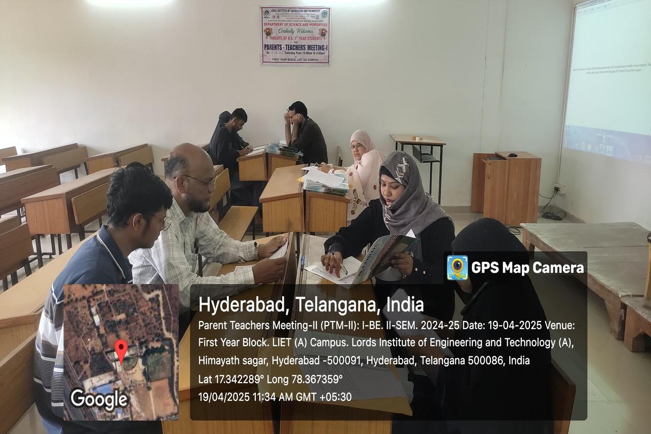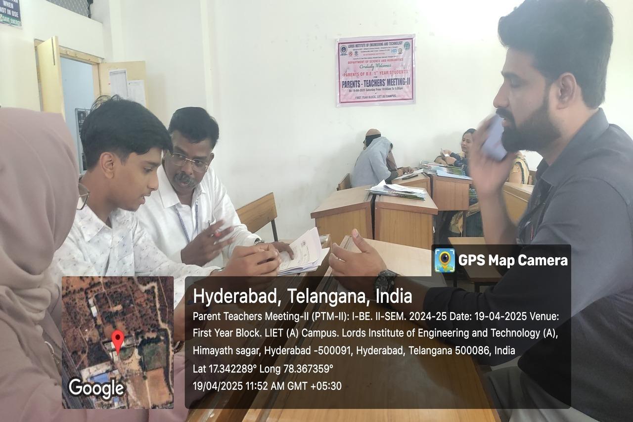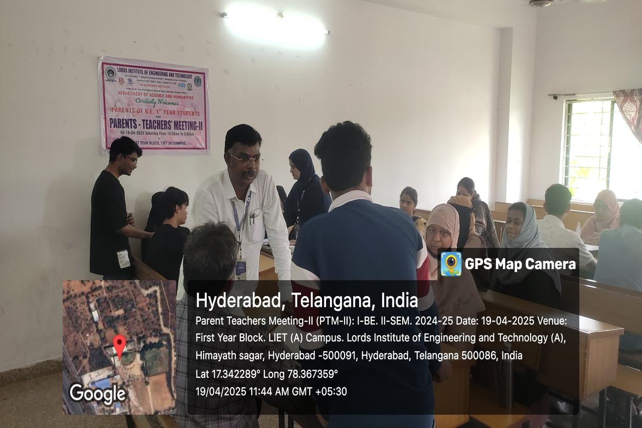 The Department of Science and Humanities at Lords Institute of Engineering and Technology successfully organized the Parents-Teachers’ Meeting-II on 19th April 2025 from 10:00 AM to 5:00 PM at the First Year Block, LIET (A) Campus. The event focused on fostering strong collaboration between parents and faculty for the academic growth of B.E. 1st Year students. An overwhelming response was witnessed, with over 700 parents in attendance. Valuable feedback and discussions took place, highlighting student progress and addressing concerns. The meeting strengthened the bond between the institution and parents, reaffirming their shared commitment to student success and holistic development