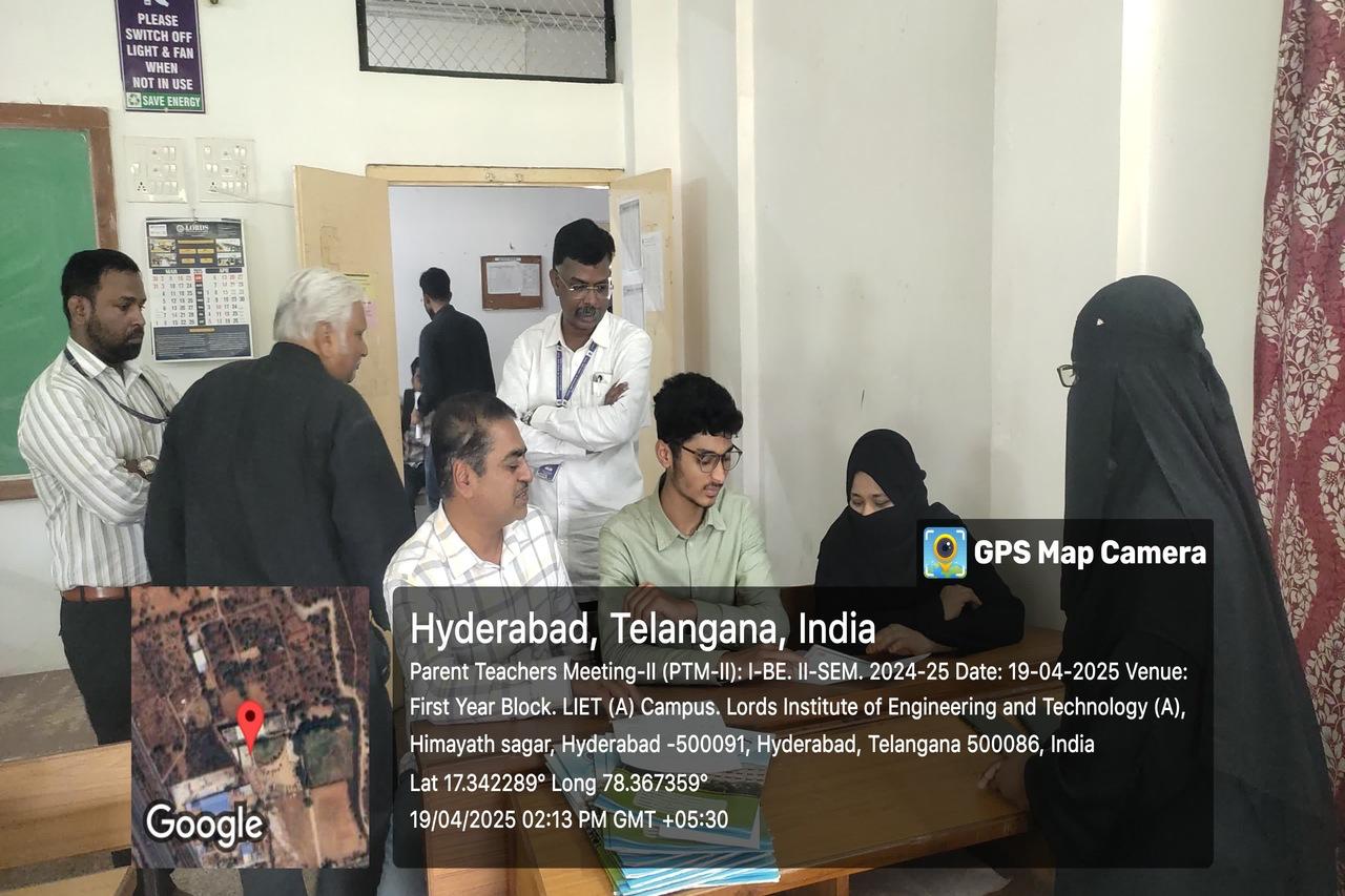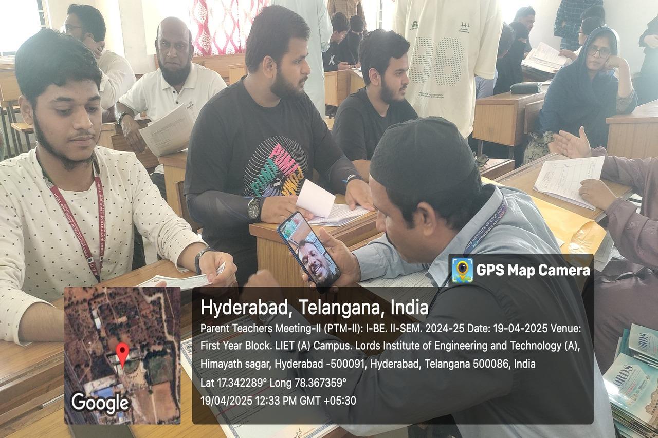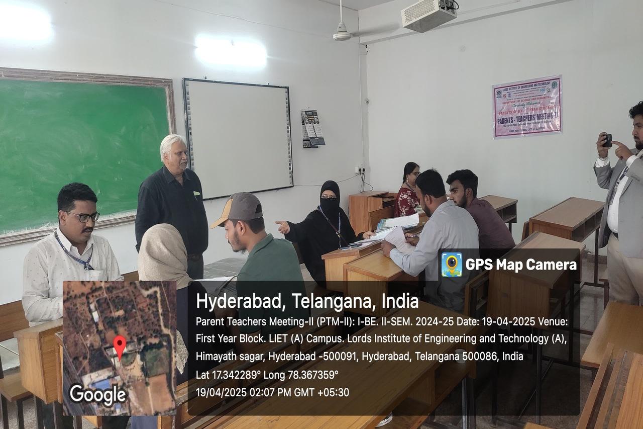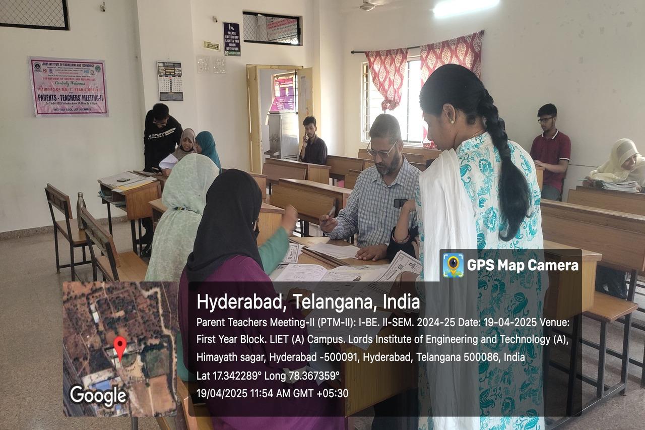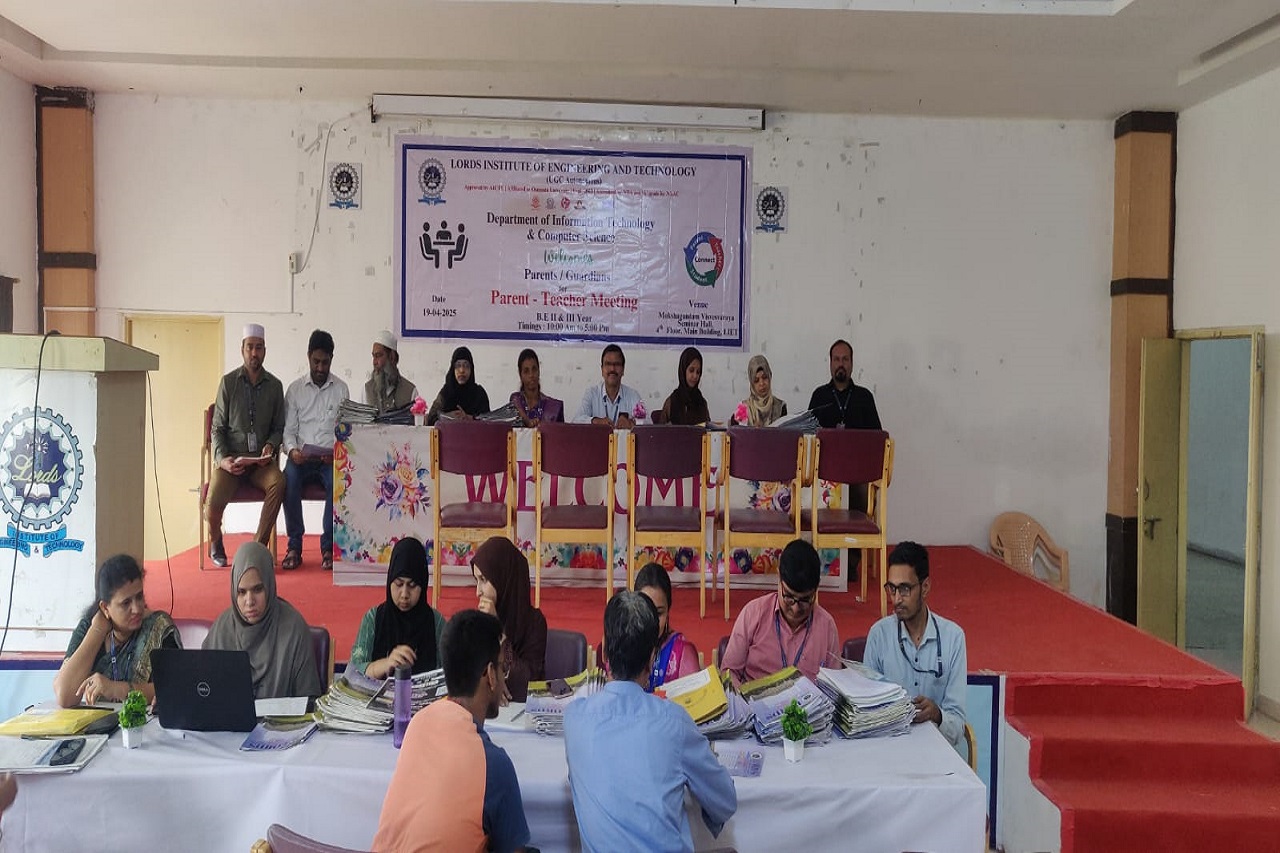 The Department of Science and Humanities at Lords Institute of Engineering and Technology successfully organized the Parents-Teachers’ Meeting-II on 19th April 2025 from 10:00 AM to 5:00 PM at the First Year Block, LIET (A) Campus. The event focused on fostering strong collaboration between parents and faculty for the academic growth of B.E. 1st Year students. An overwhelming response was witnessed, with over 700 parents in attendance. Valuable feedback and discussions took place, highlighting student progress and addressing concerns. The meeting strengthened the bond between the institution and parents, reaffirming their shared commitment to student success and holistic development