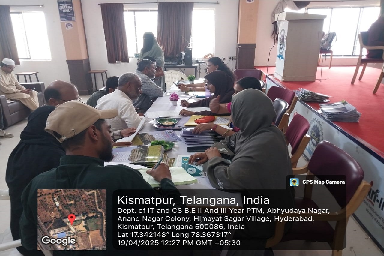 Description: On 19th of April 2025, the Parent-Teachers Meeting was conducted for B.E.II nd & IIIrd year in Seminar Hall-IV Floor as per the schedule where the issues related to the mentoring, performance of the students in academics, curricular, extra-curricular activities and other developmental aspects of the students were discussed with the Parents and Guardians.The meeting was held in presence of the Principal, Dean Academics, HoD, Mentors and the Class In-charges. During the discussion it was also informed the required support which department is extending towards the development of each and every child and at the same time the supports which are required from the parents for growth of their ward.