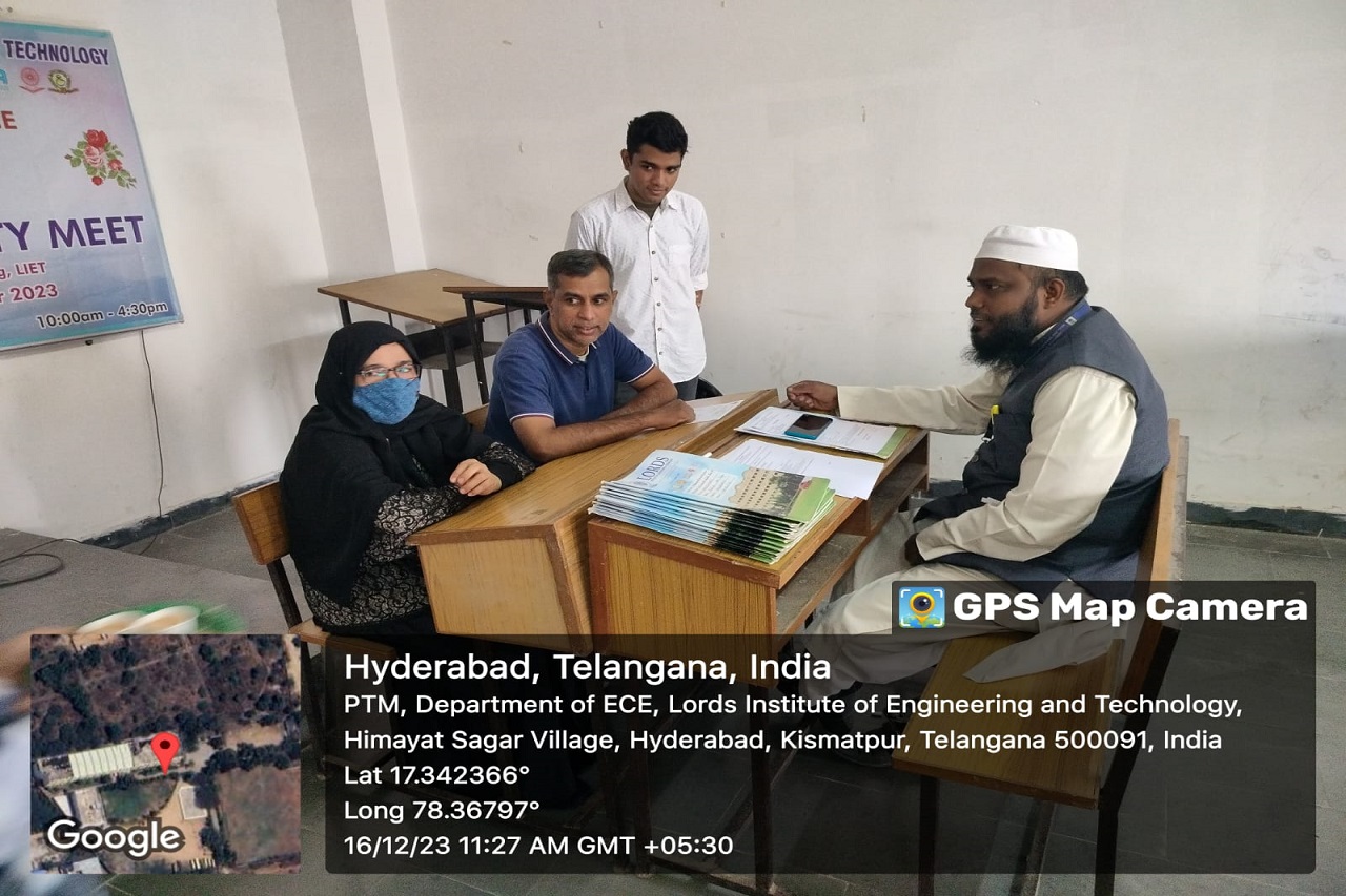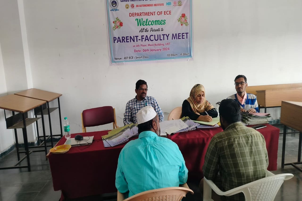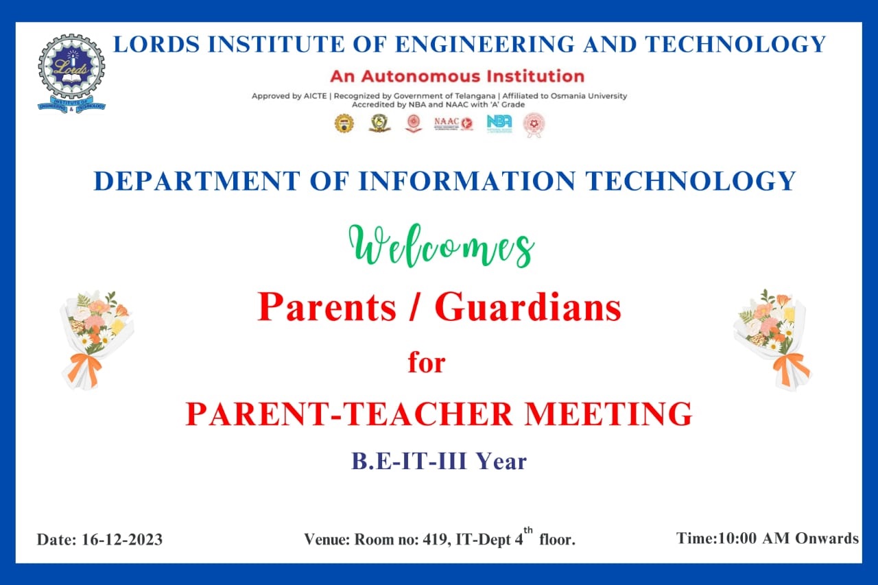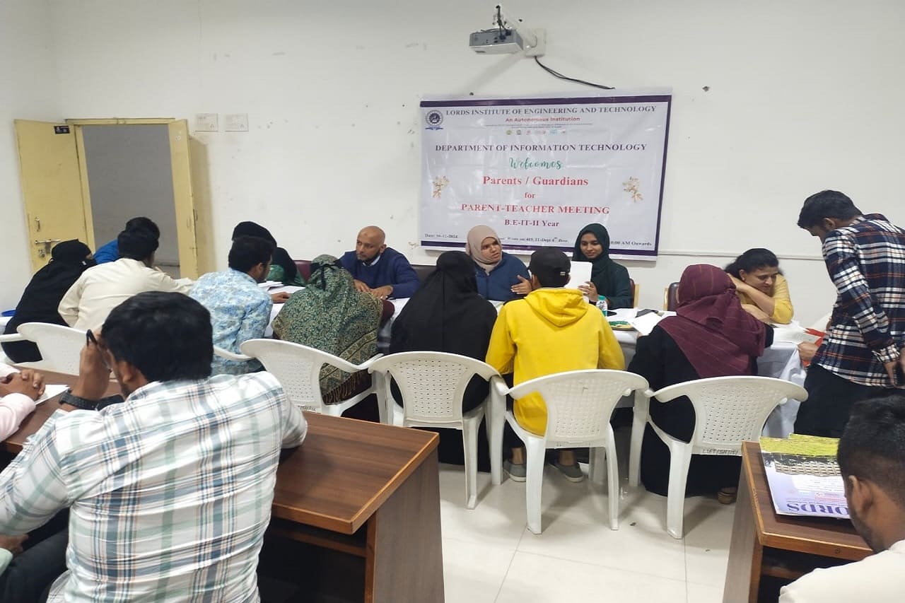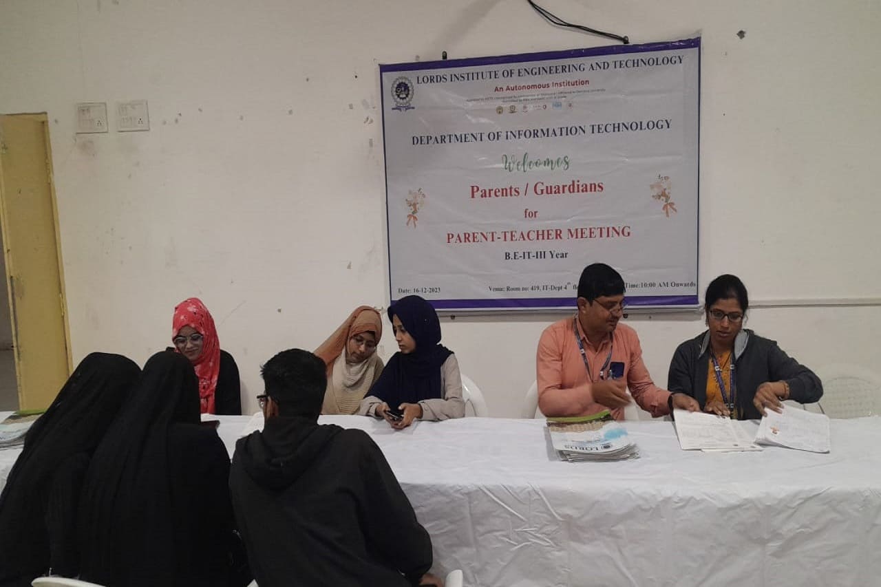 Description: Department of Information Technology has conducted Parent Teacher Meeting on 16-12-2023 & 06-01-2024 at 419 Smart Class-IT, IV Floor, LIET. Dr. K Nagi Reddy HoD-IT, Mentors & Class Incharges Interacted with the parents/Guardian & informed about the Academics & CIE-I Marks, Regularity, Minimum attendance required as per norms, Placement Training Plan, Professional Improvements required in students for their career growth.