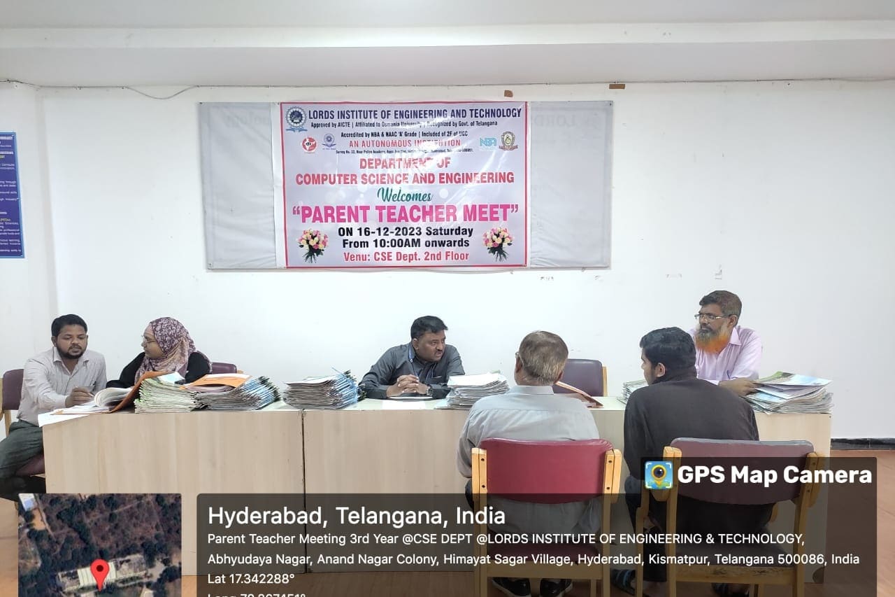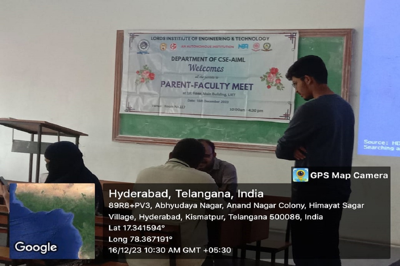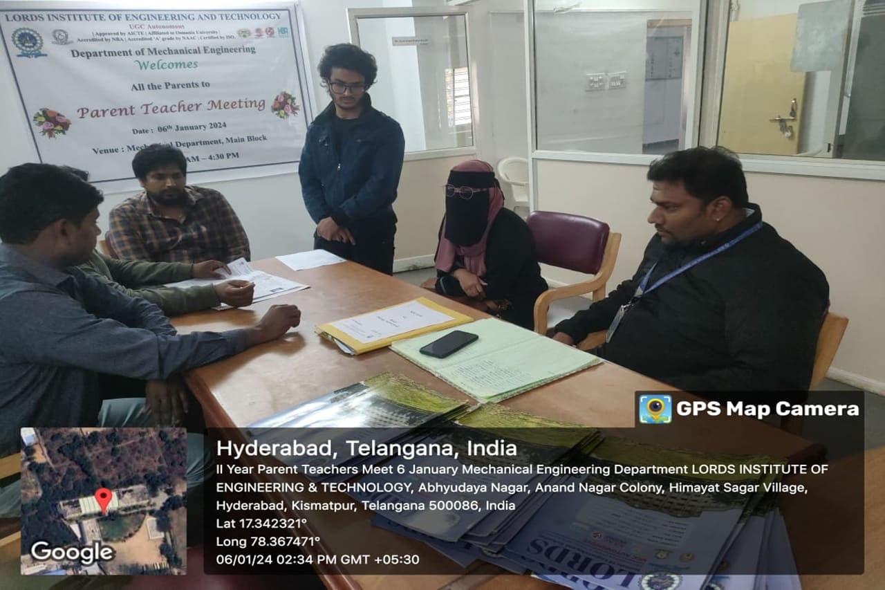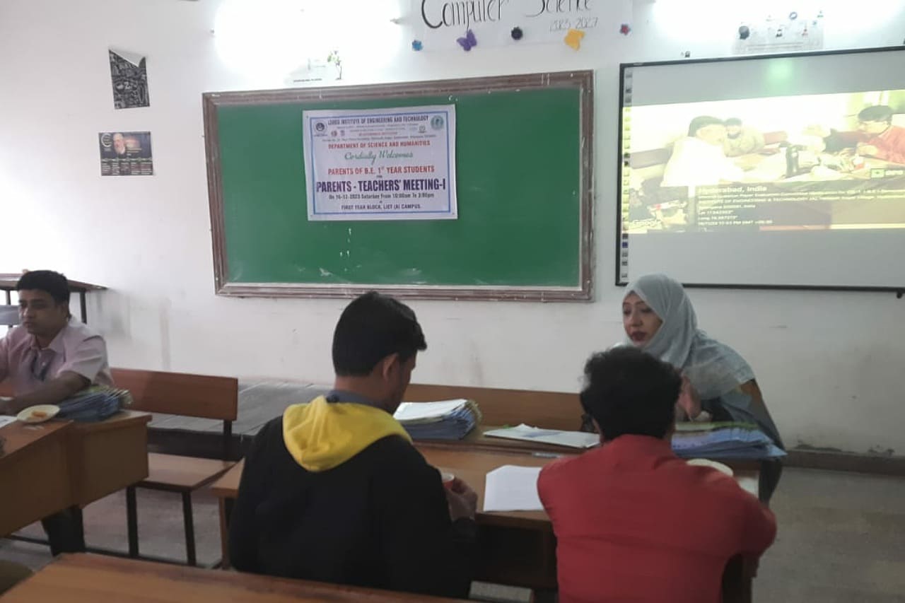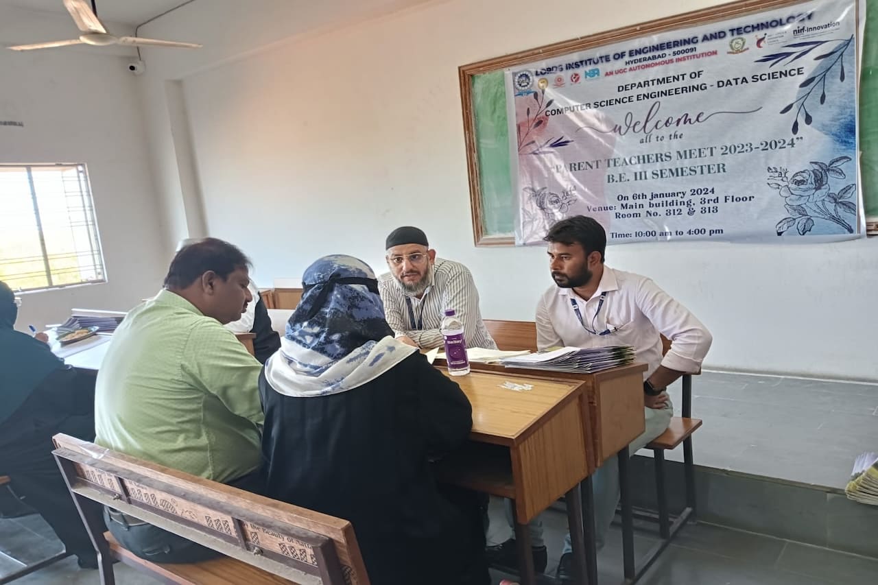 Description: Department of Information Technology has conducted Parent Teacher Meeting on 16-12-2023 & 06-01-2024 at 419 Smart Class-IT, IV Floor, LIET. Dr. K Nagi Reddy HoD-IT, Mentors & Class Incharges Interacted with the parents/Guardian & informed about the Academics & CIE-I Marks, Regularity, Minimum attendance required as per norms, Placement Training Plan, Professional Improvements required in students for their career growth.