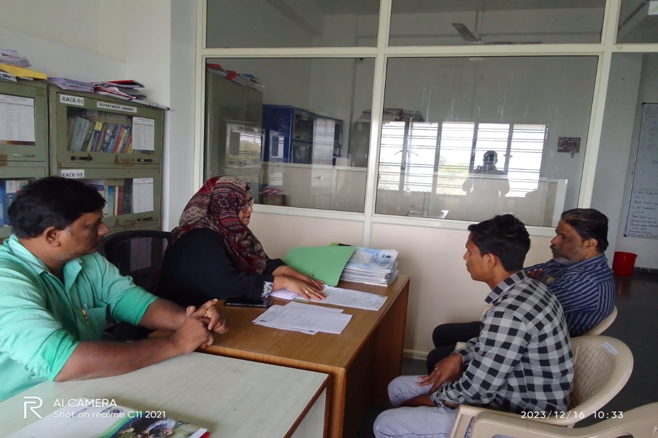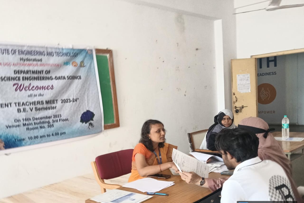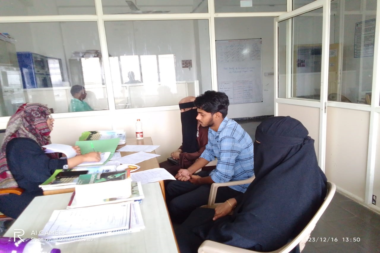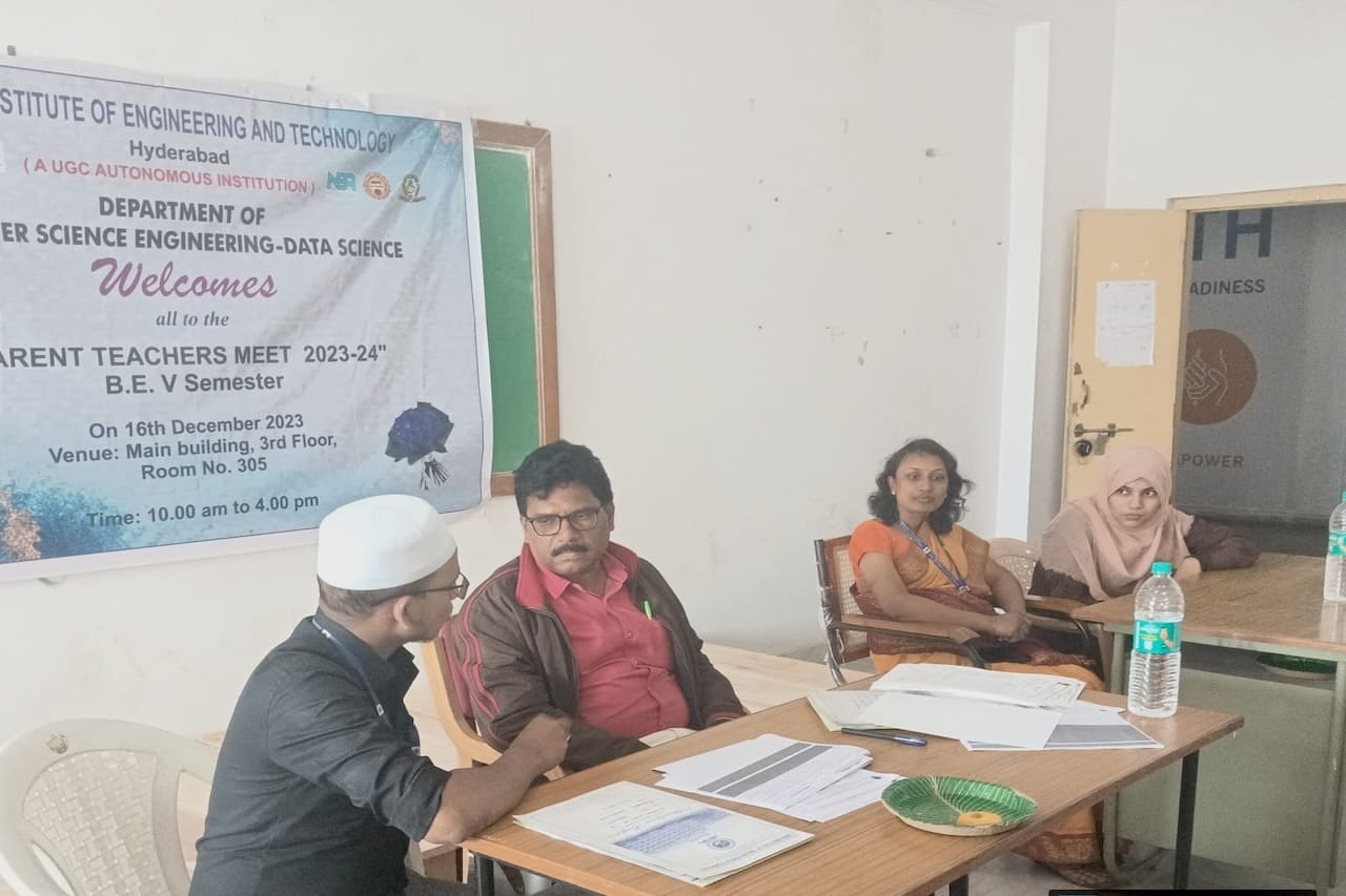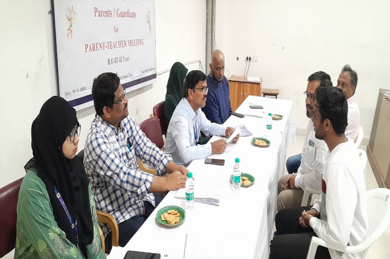 Description: The Parent Teacher Meeting of the CSE department was conducted on 16th December 2023 and 6th January,2024, in CSE Seminar Hall for 2nd and 3rd year students respectively. The academic progress of the students, their performance in CIE-1, attendance percentage, previous semester results, and activities conducted in the college, guest lectures, technical training, placements and professional bodies membership were discussed with the parents. Parents and students were counselled on how much time to spend on a daily basis to prepare to get good marks in the exam. 3rd -year students were also suggested to enroll in advanced programming courses, beyond the syllabus to get job ready till the end of their engineering course. Feedback, remarks and suggestions were taken from parents as well. The progress report for the current semester was handed over to the parents. Those students having consistently less attendance are recognised and counselled students and informed parents to send their wards regularly.