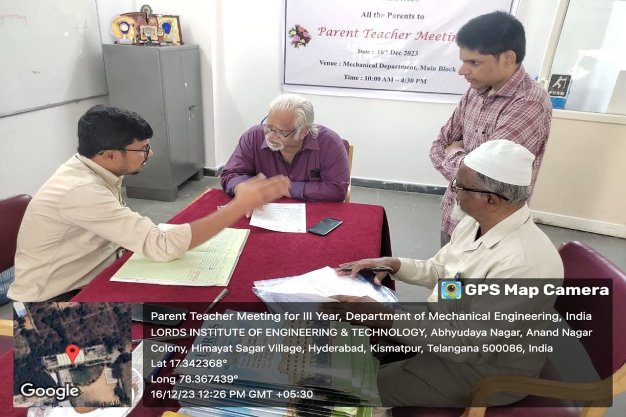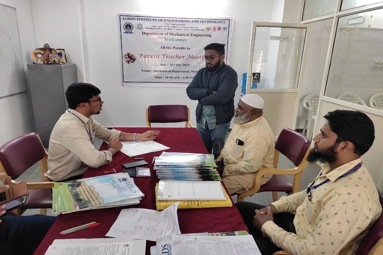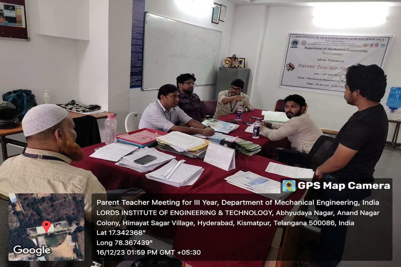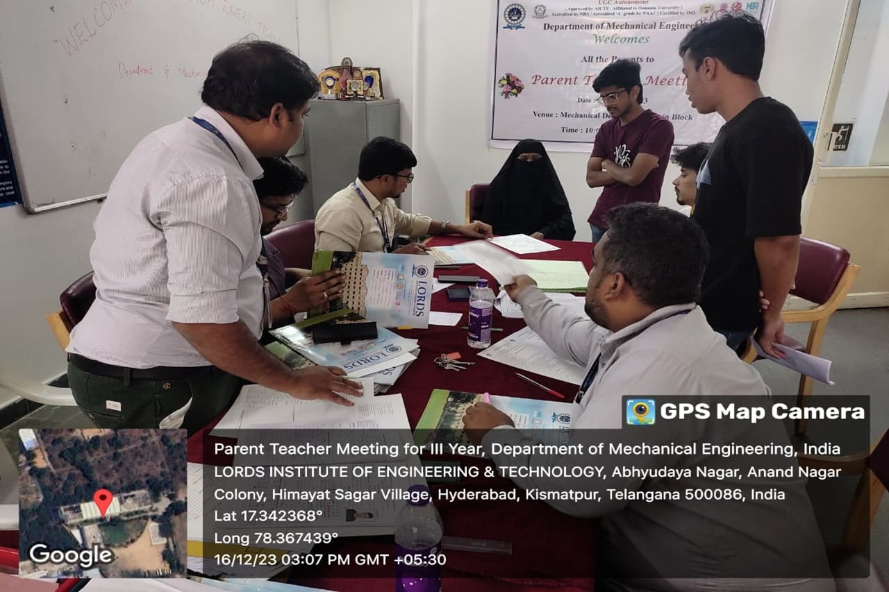 Description: The Department of Mechanical Engineering has conducted the Parents-Teachers Meeting for V Semester and informed the Progress, Academic Performance, Attendance and Precautions for better performance. A total of 35 Parents had attended the PTM on 16-12-2023.