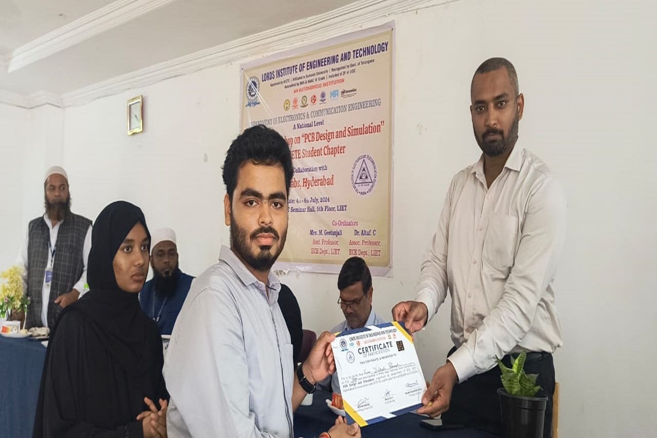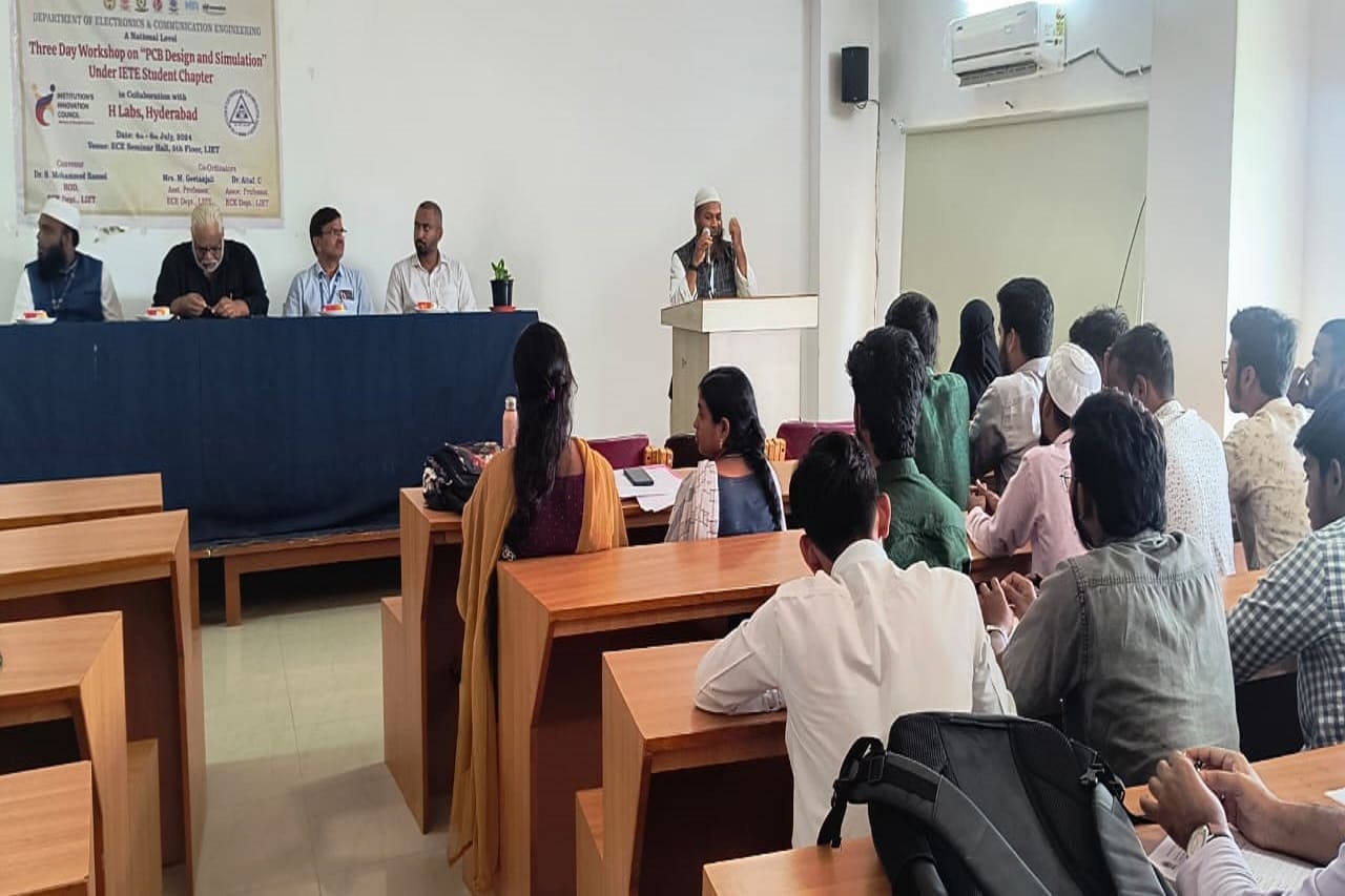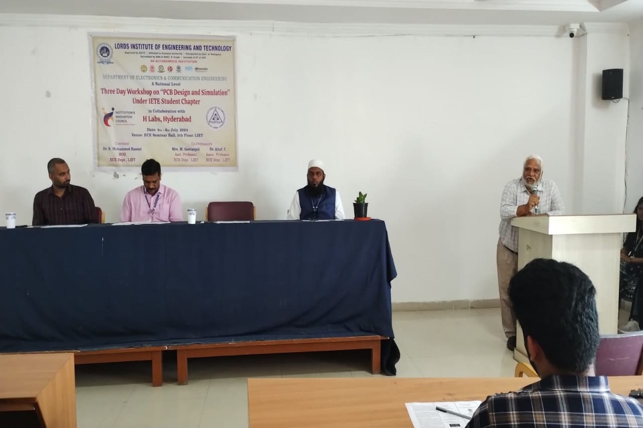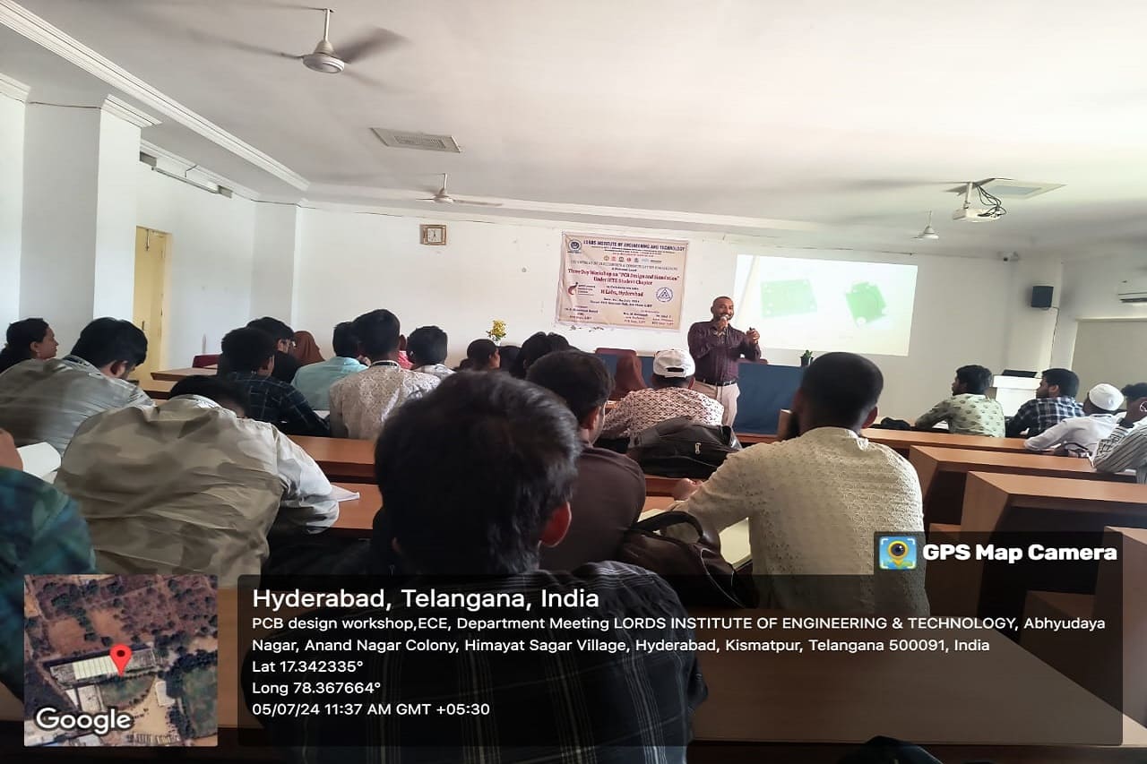 Description about the event (50 Words): From July 4th to 6th, a PCB Design Workshop was held for second-year ECE students, with 63 enthusiastic participants. Led by Mohammed Shahid Hussain, Founder and CTO of HLABS, the workshop provided valuable hands-on experience in PCB design techniques. His expert guidance greatly enriched the students’ practical skills and understanding of electronic circuit design, offering a valuable learning opportunity for future engineers.