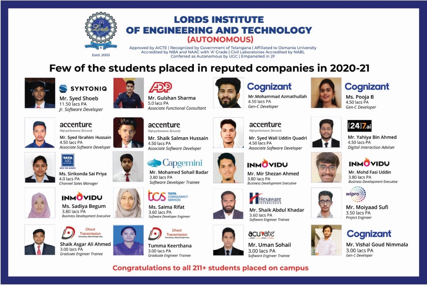 - Help students in obtaining placement in reputed companies.