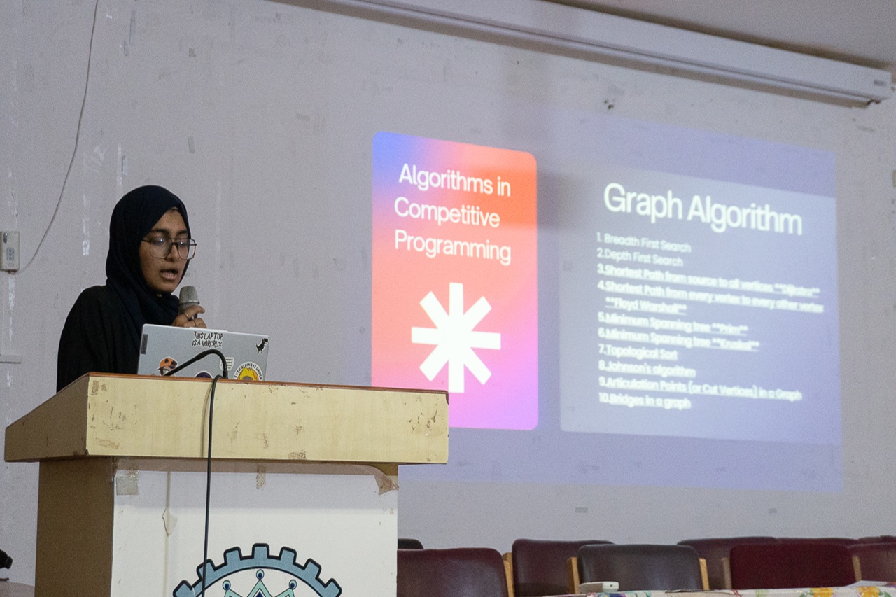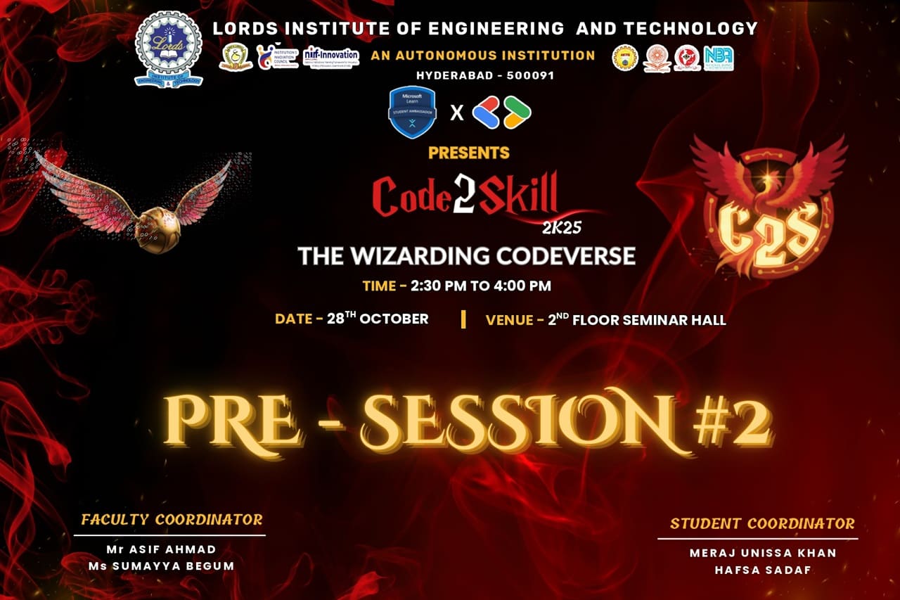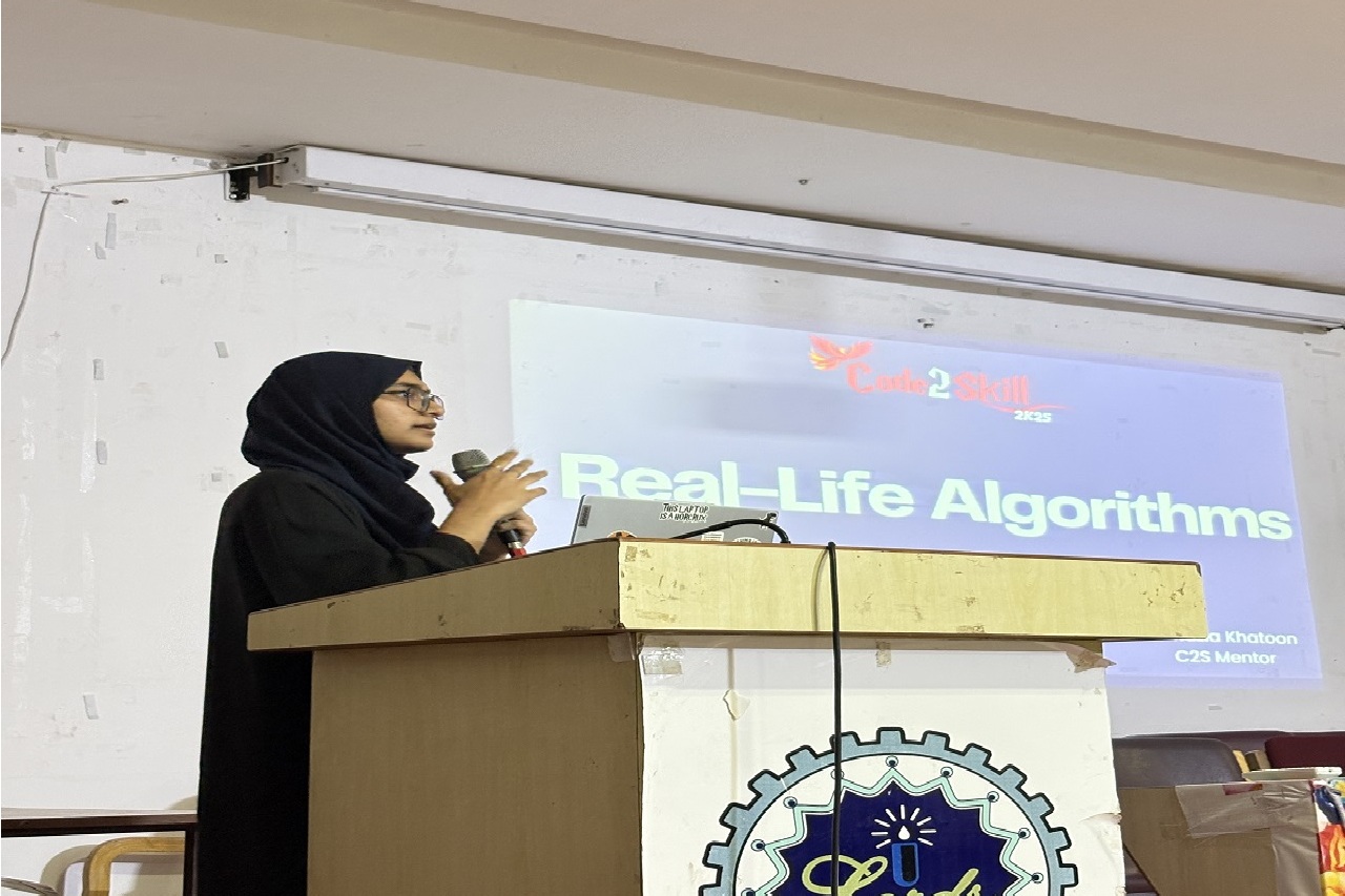 Description: Code2Skill Pre-Session #2 was a dynamic and inspiring pre-event that energized participants for the upcoming programming competition. The session featured an introduction to competitive programming, live code examples by Zohair Khan and Muaz Hyder, and an engaging quiz. Guest speakers Yasmin Saniya and Syed Miran, both professionals at Amazon, shared valuable insights from their tech journeys, motivating students to pursue excellence. Ms. Razia Khatoon, one of the mentors of codeskill, has taken a brief session on how to do coding. Ayesha provided clear event-day details, while Hafsa Sadaf and Juveriya Fatima wrapped up with a strong call to register. Finish all this with a quick quiz by Haniya Siddiqui and Mohammed Sohail Ayaan. With a βΉ22,000 prize pool in the main event, the session successfully built excitement and confidence among attendees, preparing them to take on real coding challenges.