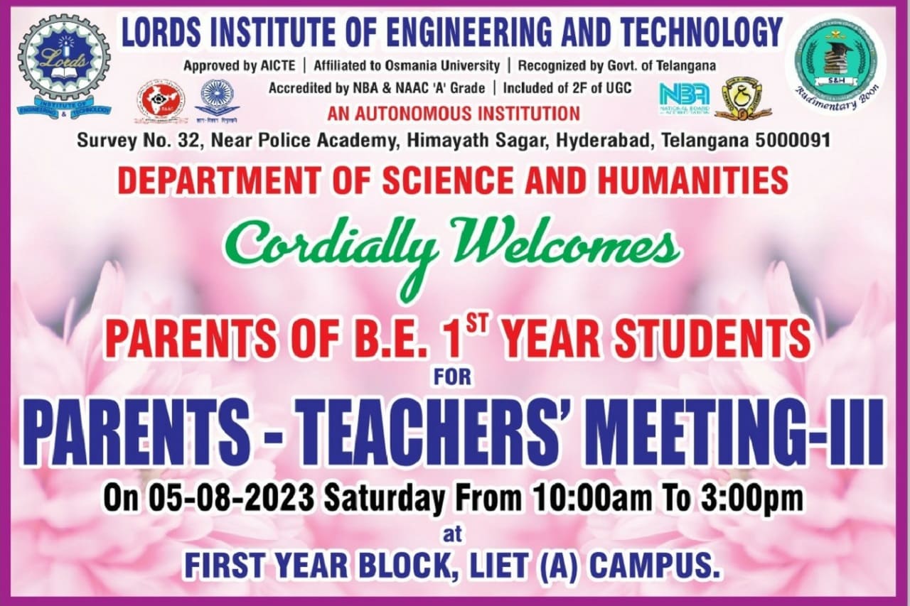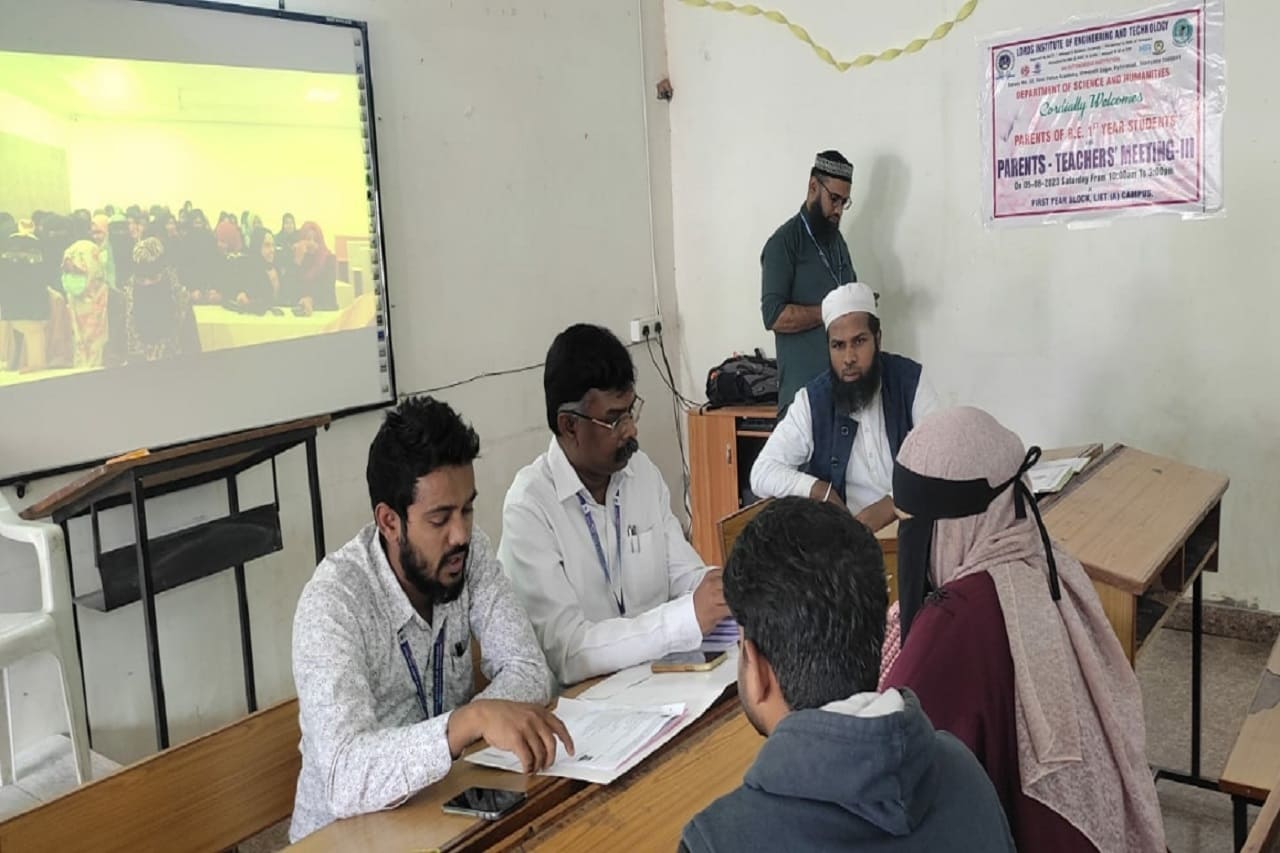 Science and Humanities Department conducted Parent-Teacher meeting-III on 5th August, 2023 in First Year Block at College Campus for First year students. The academic progress of the students, their performance in CIE-1, attendance percentage and previous semester results were discussed with the parents. Feedback, remarks and suggestions were taken from parents. Those students having consistently less attendance are recognised and counselled students and informed parents to send their wards regularly.