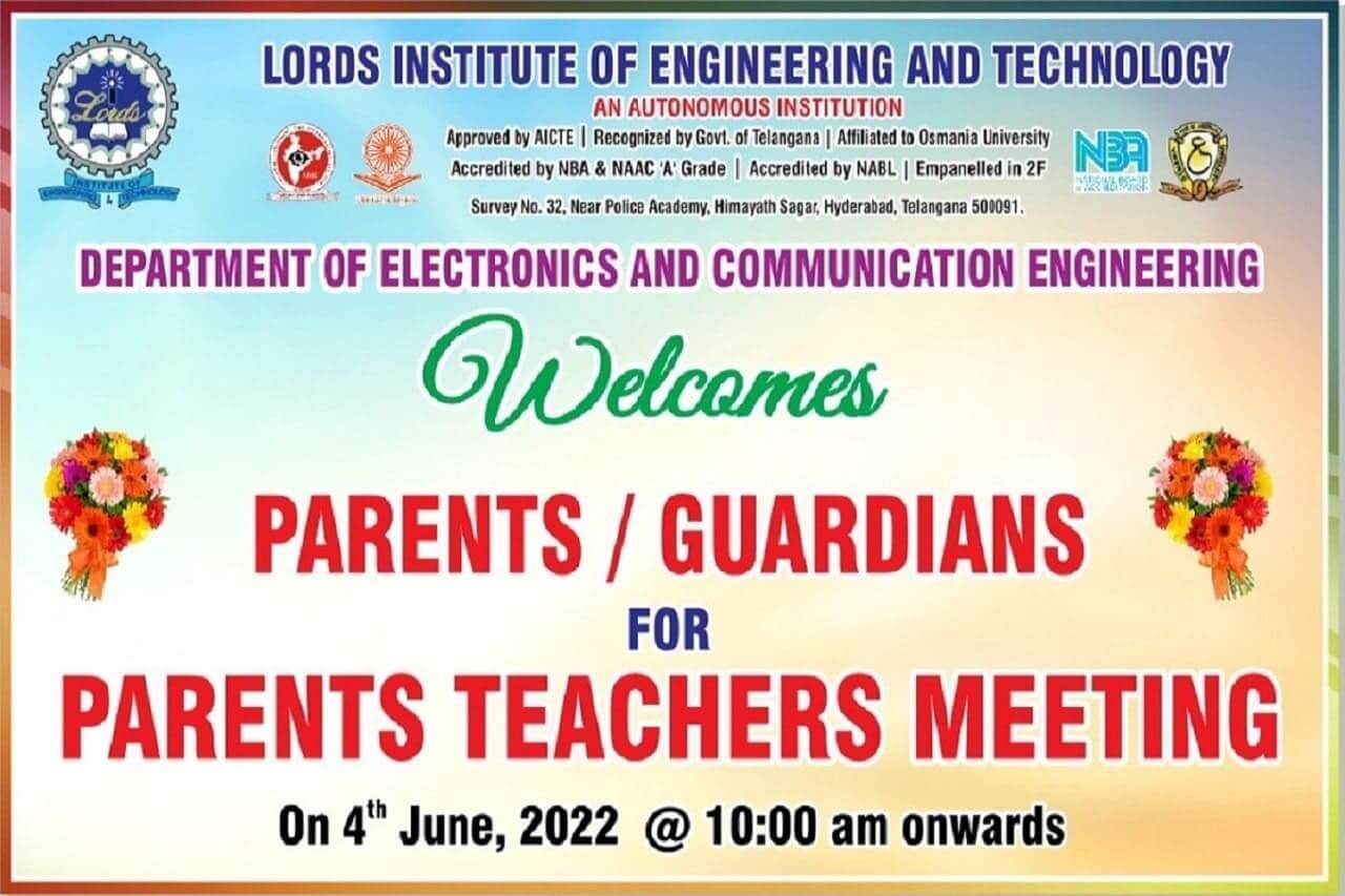 Events Parent Teacher Meet- ECE admin June 1, 2022 Title: Parent-Teacher Meeting 2022 Department / Cell: Electronics & Communication Engineering Date : 04/06/2022 No.of parents Attended: 20 ← Parent Teacher Meet – 2022 CSM Parent Teacher Meet →