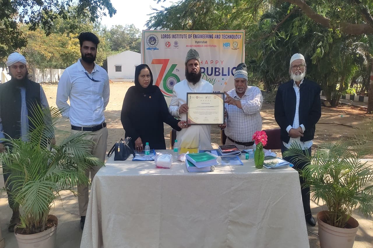 Description: Lords Institute of Engineering and Technology(A) marked the 76th Republic Day on January 26, 2025, with patriotic zeal. The celebrations began with the hoisting of the national flag, followed by motivational speeches and the presentation of incentive awards to recognize faculty achievements. With 120 participants gracing the occasion, the event concluded with key announcements by the management, including the release of the college’s IIC Rating (3.5), the introduction of a new R&D policy, and the launch of the S&H Newsletter for the academic year 2023-24.