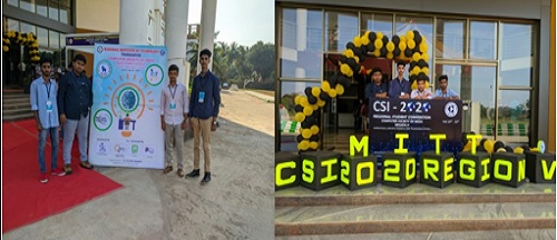 I B.E. students Mr. Syed Fawaz Ali (IT); Mr. Adnan Ali Khan (CSE); Mr. Mohammad Abdul Khadeer(CIVIL) and Mr. Mohammed Roushan Ali (CSE) were represented in Coding, Poster Design, Learn 2 Automate and Quizathon and won consolidated prizes in 3 events organized by MIT, Mysore, Karnataka on 14th& 15th February 2020.