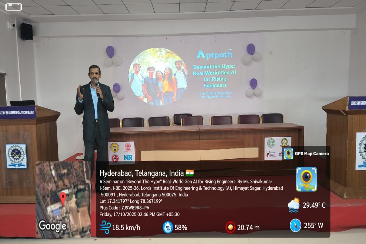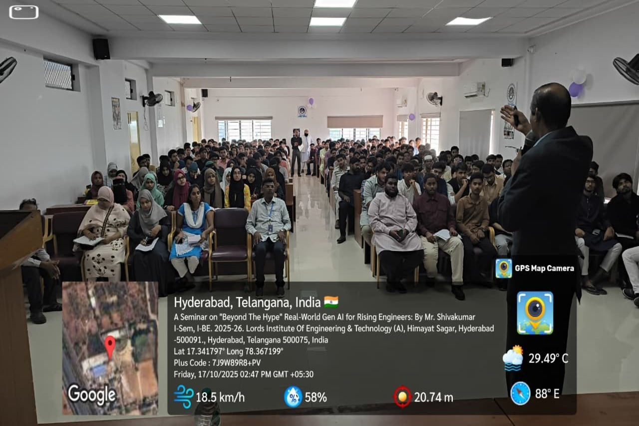 Description: The Department of Science and Humanities, in collaboration with ISTE, successfully organized a seminar titled “Beyond the Hype: Real-World Gen AI for Rising Engineers” on October 17, 2025. The session was delivered by Sri Shivakumar Keskar, Managing Partner at SmartX Technologies, Hyderabad, and attracted over 300 enthusiastic participants. The seminar provided valuable insights into the practical applications of Generative AI and its transformative impact on engineering innovation.