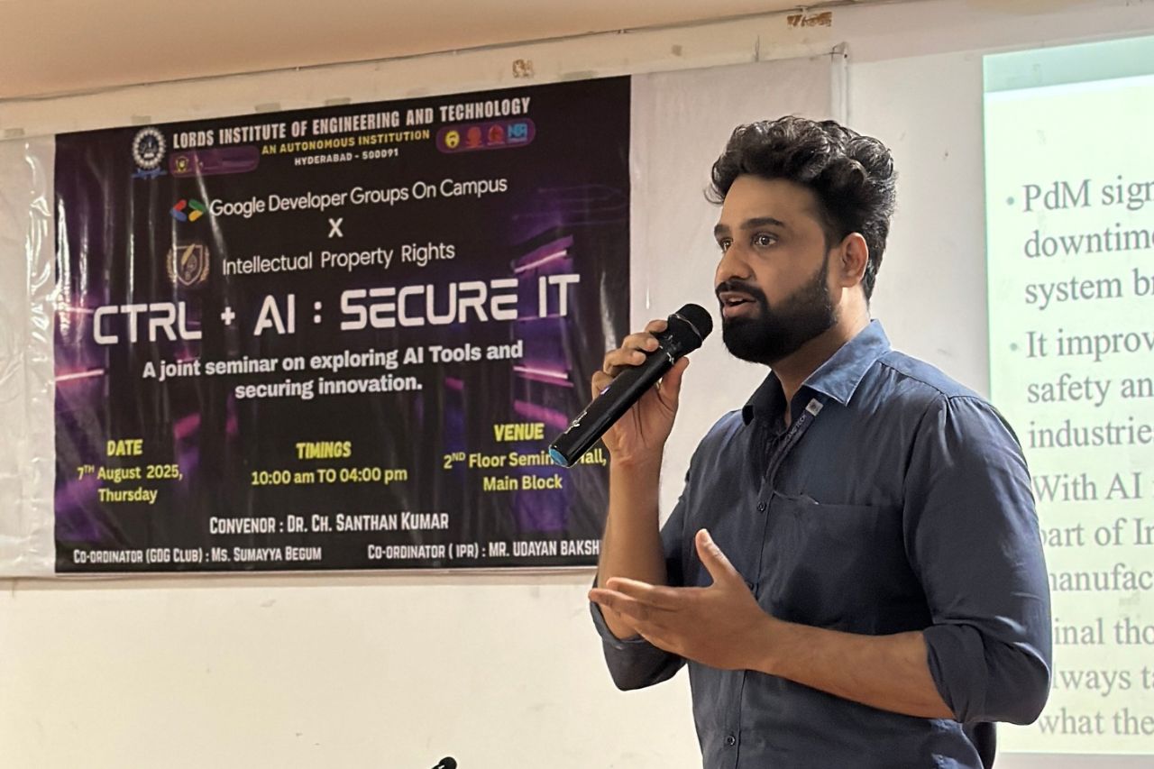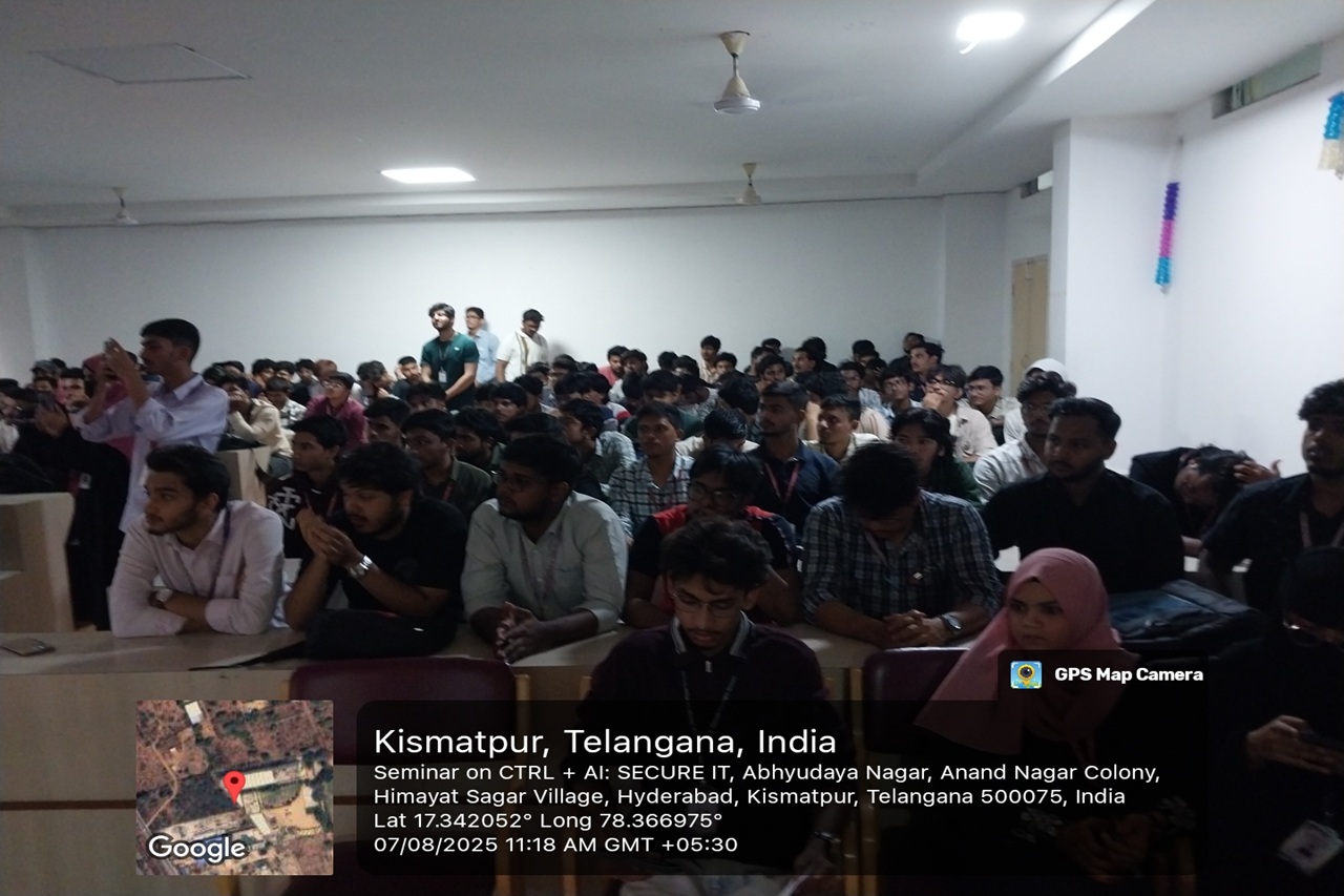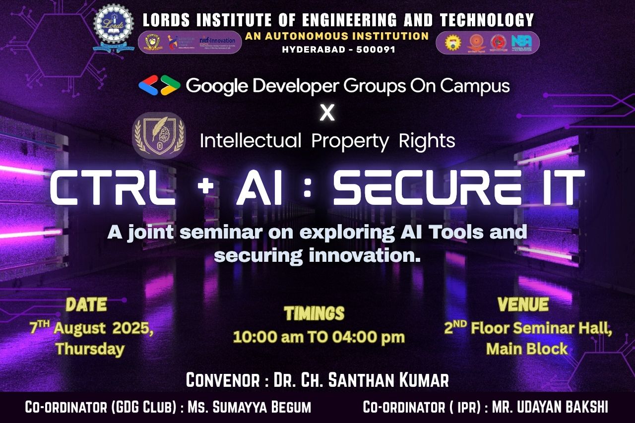 Description about the event (50 Words): The GDG and IPR Cell jointly organized a seminar titled CTRL + AI: Secure IT. The seminar focused on the intersection of Artificial Intelligence and Intellectual Property Rights, highlighting how modern AI Tools & technologies can be leveraged to enhance digital security systems that can be transformed into a project which will be converted into paper publication and The event brought together experts, professionals, and students to discuss pressing challenges in IT security and how AI is transforming the way we approach threat detection, data protection, and system resilience. Overall, it served as an insightful platform to explore AI Tools to provide innovative solutions for securing the digital world. Seminar was concluded by Quiz on the topics explained during the seminar. Participants have appreciated the event. Total 198 participants attended the seminar from various departments.