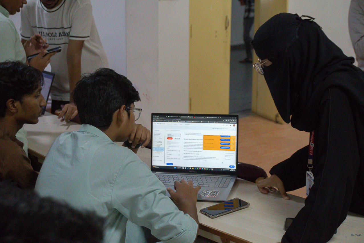 The session also familiarized students with various Google Cloud tools and services, enabling them to explore the platform more confidently. Club members and mentors addressed common issues faced during the labs, shared practical tips, and encouraged peer learning through live demonstrations. Overall, the session played a crucial role in helping students strengthen their understanding of Google Cloud technologies and successfully progress through the Study Jam curriculum.