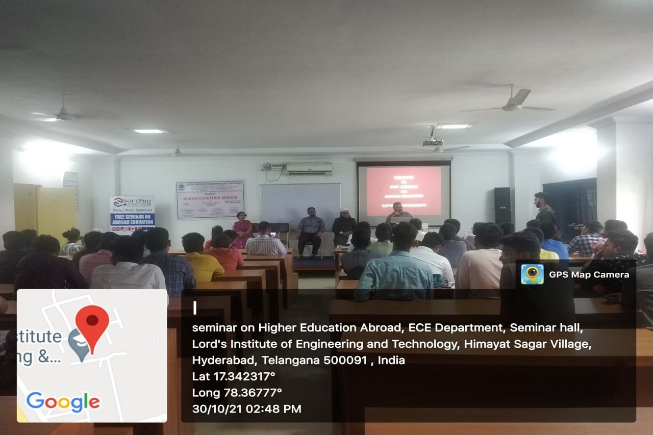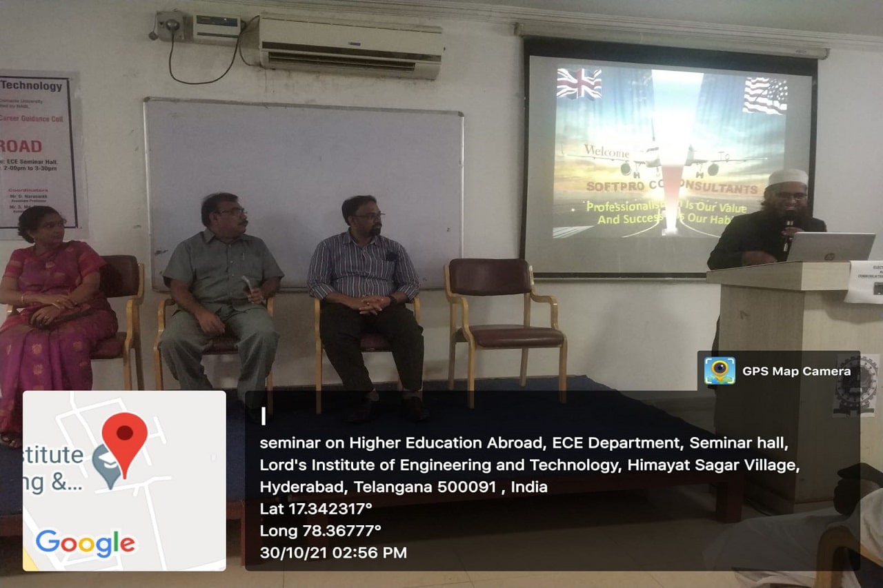 Events Seminar on Higher Education Abroad admin October 31, 2021 Name of the event: Seminar Title of the event: Higher Education Abroad Resource Person: Mr Shaik Suhel, Soft Pro Consultancy, Hyderabad Department/Cell: ECE Date: 30/10/2021 No.of participants attended: 63 ← Orientation Program for LE Students Fundraising and donation campaign →
