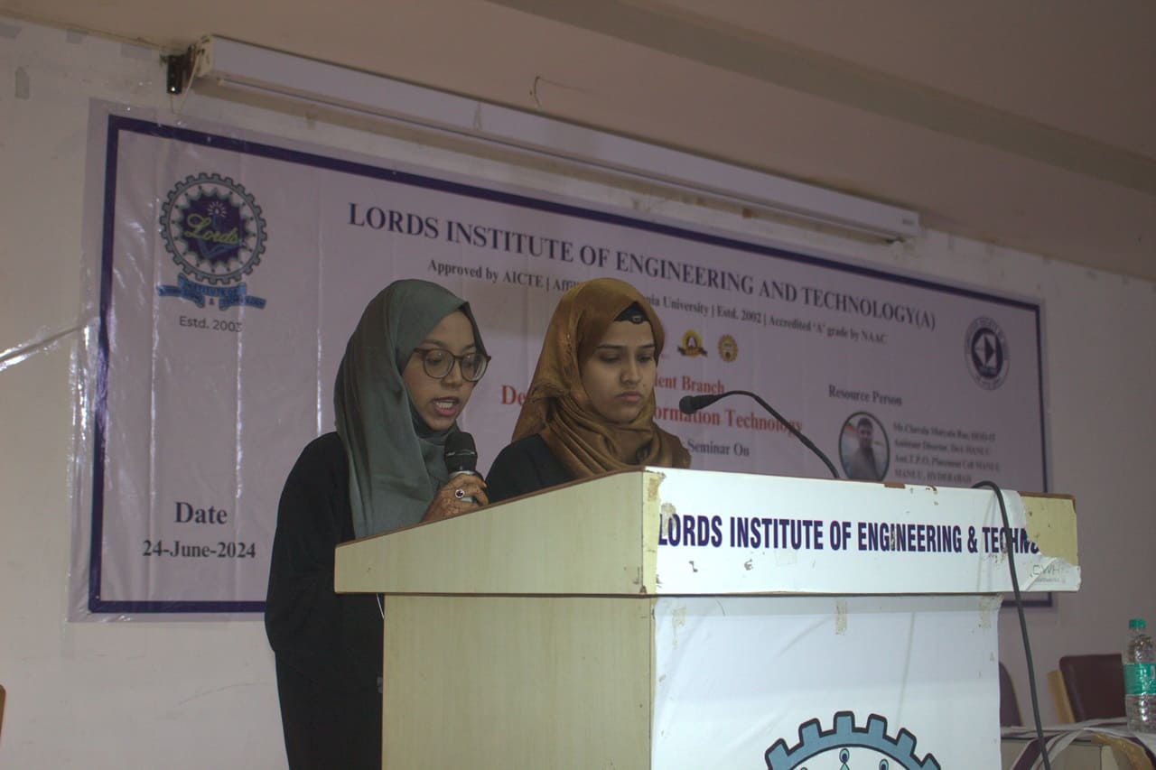 The event was presided over by Dr. K. Nagi Reddy, HOD, IT Department, Mr. Santhan Kumar, Dean IQAC and Ms. Stuti Bharadwajth, Placement director. The session was coordinated by Ms. Sumayya Begum, Assistant Professor, IT Dept.