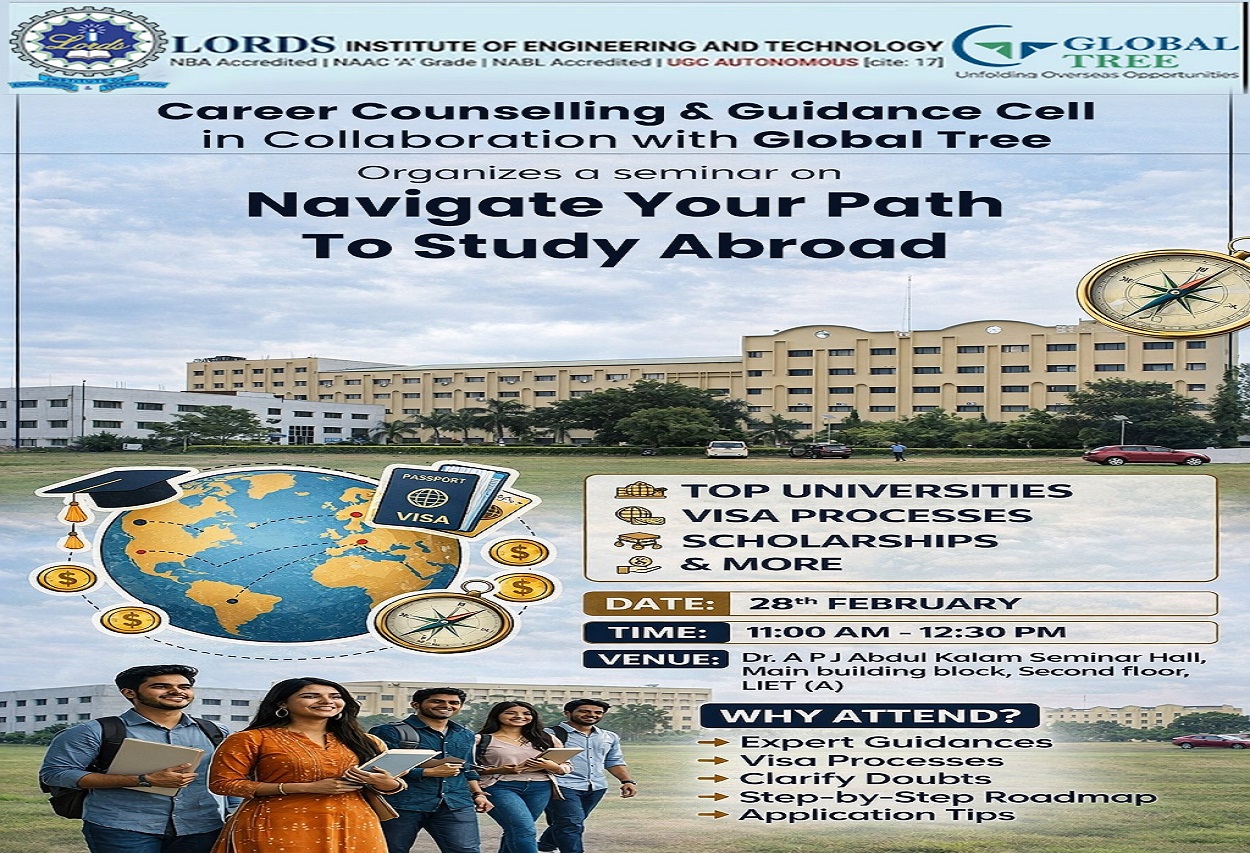 Description: A study abroad seminar Provided comprehensive guidanceon pursuing international education, Covering University selection, application procedure, Visa Requirements and Financial Planning. Attendees learn about global education trends, standardized tests (IELTS, GRE), and post-study career opportunities. These sessions often feature expert counseling and interactive Q&A. Guidance on application timelines, writing SOPs, obtaining letters of recommendation, and meeting entry requirements.