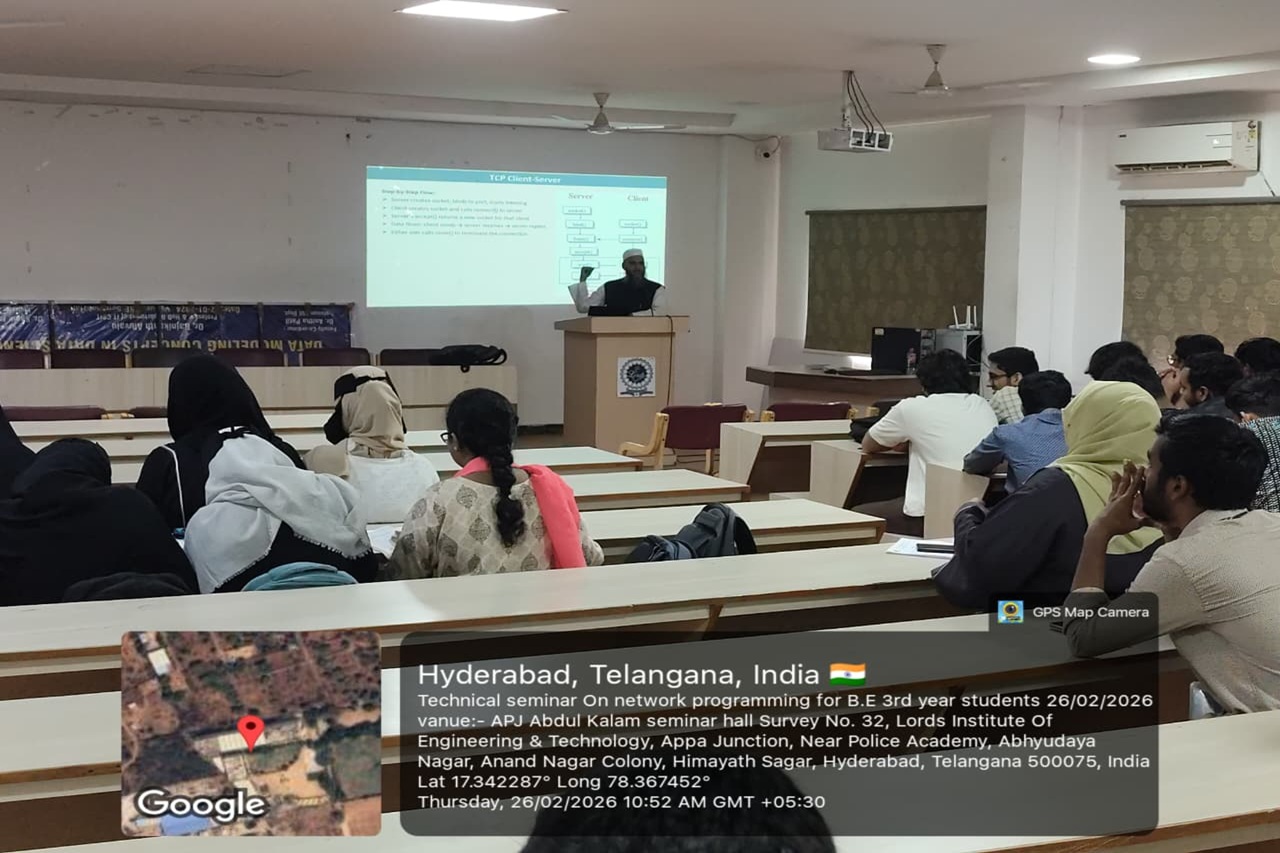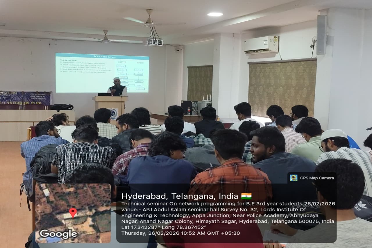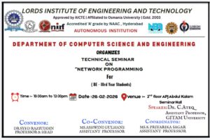 Description: The Department of CSE conducted a Technical Seminar on “Network Programming” for III Year students on 26-02-2026 at the II Floor, A. P. J. Abdul Kalam Seminar Hall. The HoD-CSE welcomed all the participants and the guest faculty.