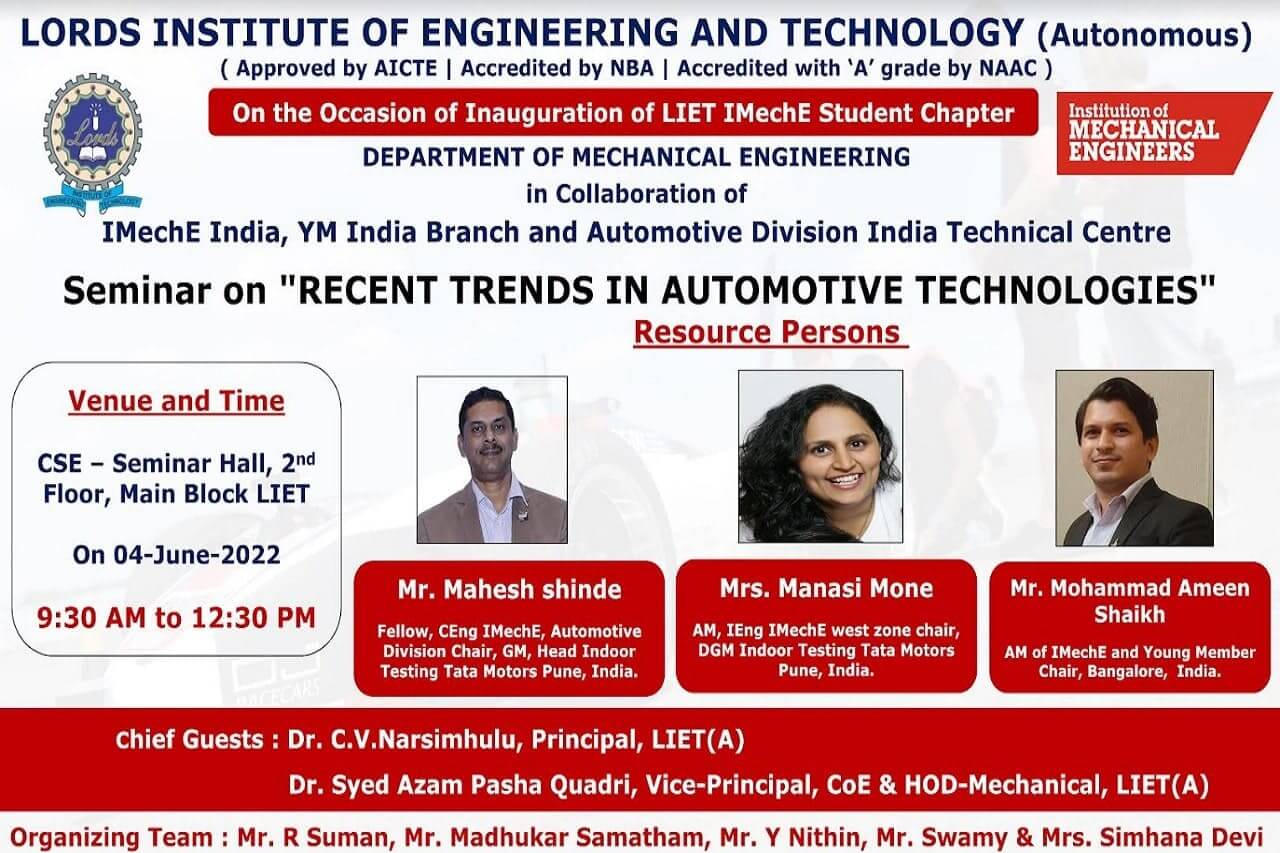 Resource Persons: Mr. Mahesh Shinde, Fellow, CEng IMech, Automotive Division Chair, GM, Head Indoor Testing, Tata Motors Pune, India
