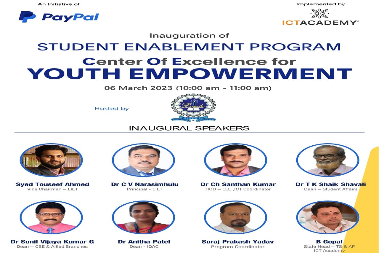 Lords Institute of Engineering and Technology is an implementation institution for ICT Academy for the “Centre for Youth Empowerment”– under the Student Empowerment Program powered by PayPal India. Total 103 students of CSE,IT,ECE & EEE – 4year will be trained for 140 Hours and certified in “AWS Cloud”. Along with the Management, Principal, Directors, Deans, HoDs, ICT Coordinator Mr.B.Gopal, ICT-State Head for Telangana and Andhra Pradesh was present during the inauguration function on 6/3/2023.