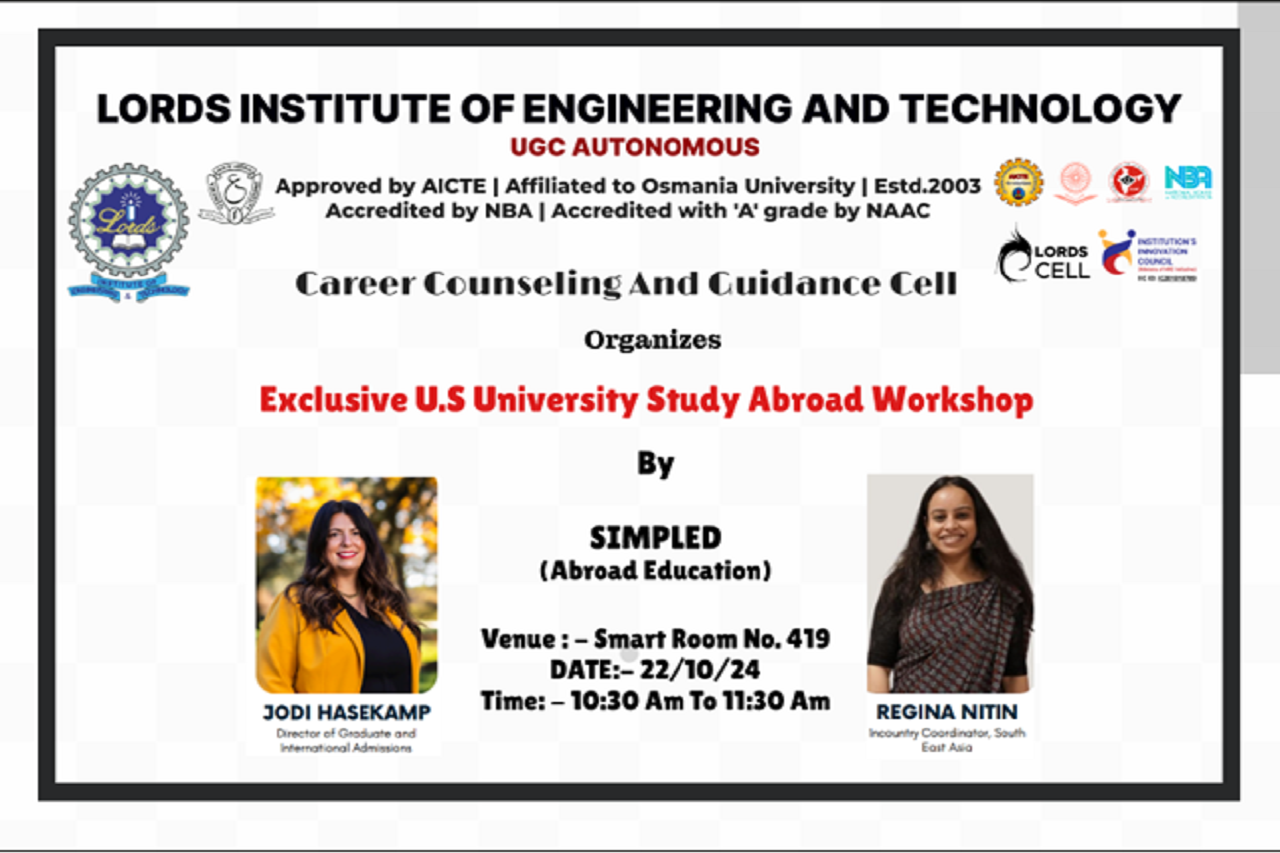 Description: Career Guidance and Counselling Cell has conducted the event, providing crucial information on pursuing higher education and professional growth in foreign countries. The speaker highlighted exciting career prospects in Australia, USA, Canada, and UK for engineering graduates. The seminar emphasized the importance of exams like GRE (Graduate Record Examinations) and GMAT (Graduate Management Admission Test) for studying abroad. Students gained valuable insights into the academic excellence and post-graduation opportunities offered by universities in these countries.