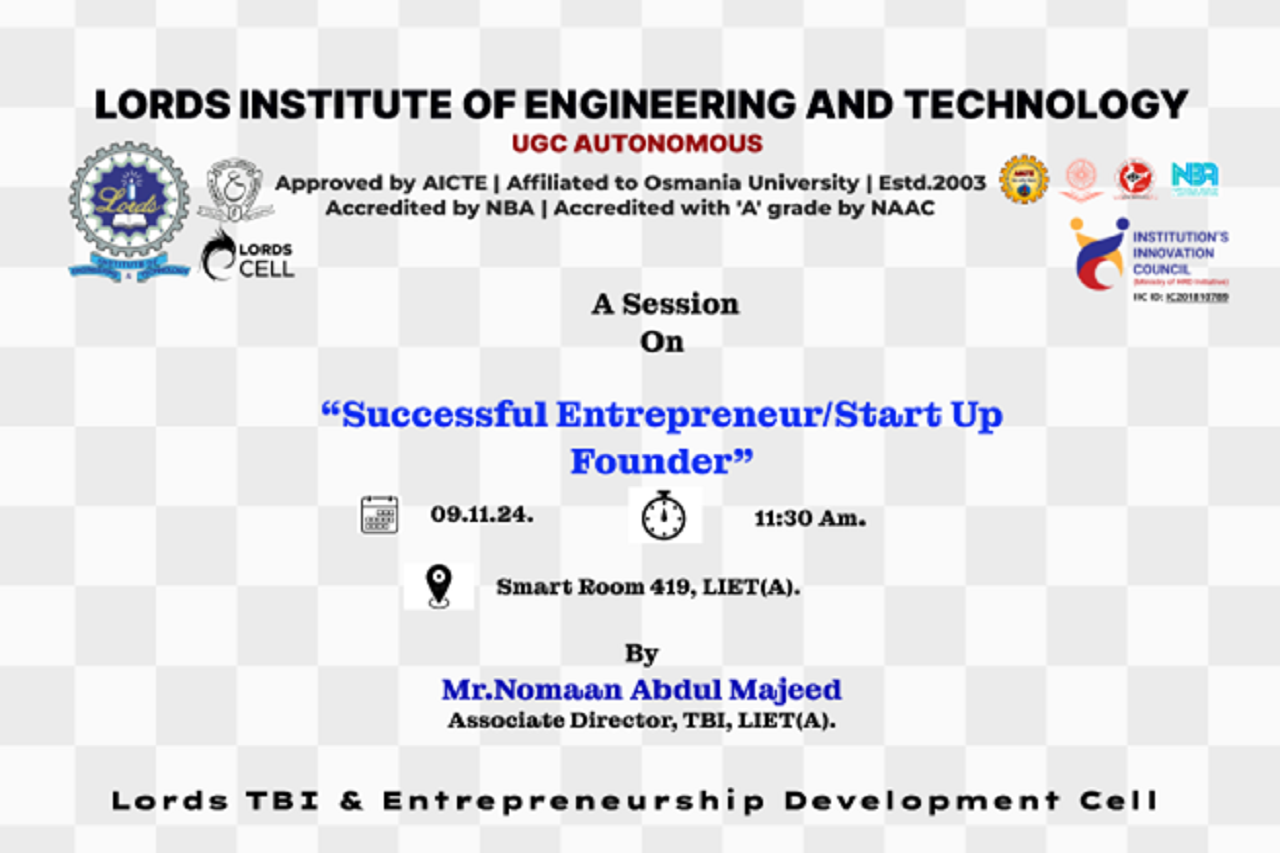 Description: The Resource Person Mr. Nomaan Abdul Majeed, Associate Director, TBI, LIET(A). Start-up on Road Assist Founder has explained clearly about the theme of the Program. The Lean Successful Start-up/Entrepreneur is a process involving rapid and iterative experimentation to test assumptions and build services that people love. Attend this session and leave with a solid understanding of the Lean Start-up/Entrepreneur process, tools and mindset, from how to define a minimum viable Business accounting and rapid experimentation.
