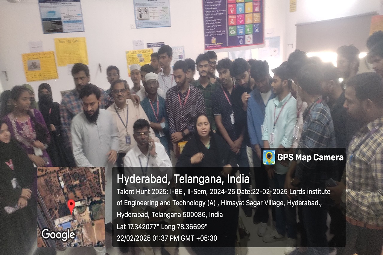 Description: The Talent Hunt 2025 at Lords Institute of Engineering and Technology concluded successfully on February 22, 2025, with 900 enthusiastic participants showcasing their skills. The event featured a variety of competitions, including Robo Rumble, Circuit Crackdown, Green Tech Challenge, and more, promoting innovation and creativity. Rizwana Madam, The esteemed Secretary, graced the occasion as the chief guest, delivering an inspiring speech on sustainability and technological advancements. With a strong focus on the 17 Sustainable Development Goals, the event encouraged students to drive positive change. Prizes worth ₹25,000 were awarded, making the event a remarkable celebration of young talent.