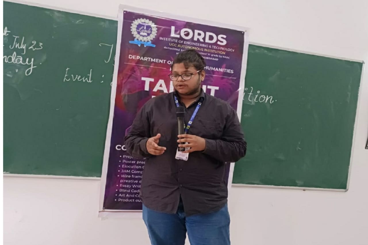 Description: Science and Humanities Department of Lords Institute of Engineering and Technology conducted Talent Hunt 2k23 for first year students on 1st August, 2023 at college campus. Many students participated in competitions like Project Model Exhibition, Poster Presentation, Video Presentation, Elocution, JAM, Wire Framing the idea, Essay writing, Blind Coding, Art and Craft, Product out of waste. The Event was conducted successfully.